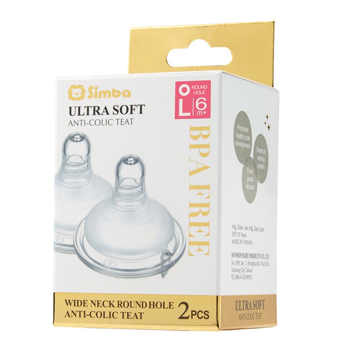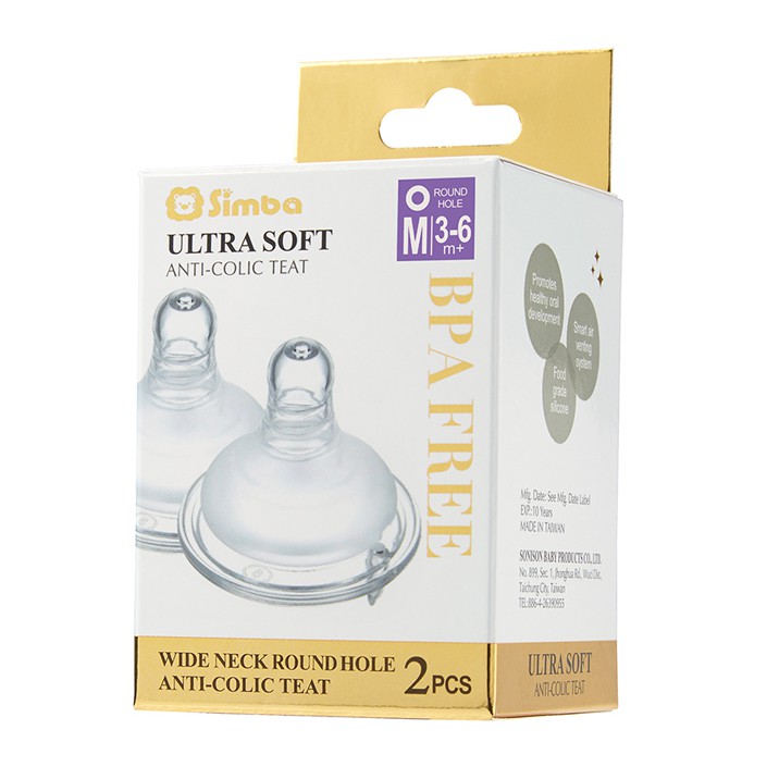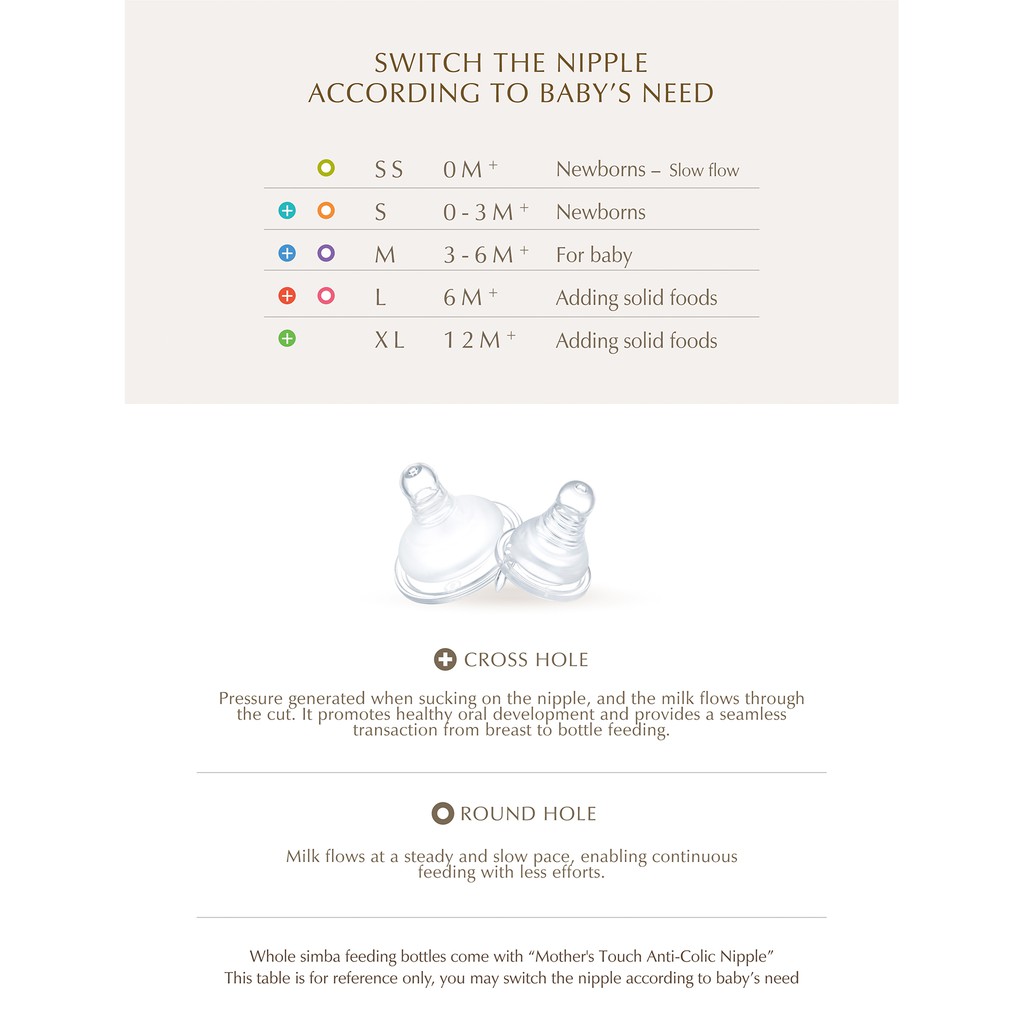 Simba Mother's Touch Wide Neck Round Hole Anti-Colic Nipple Teat (2pcs)