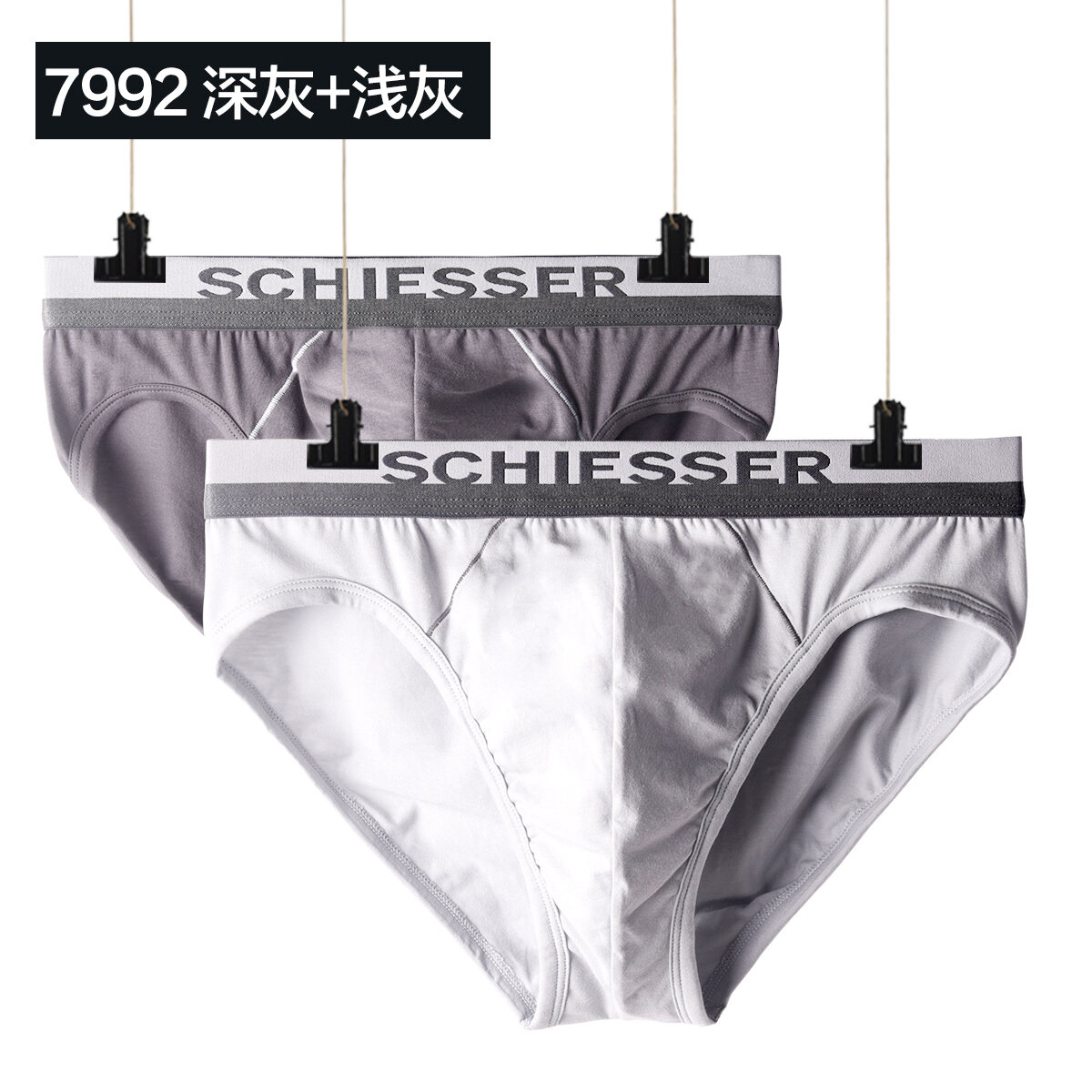 Schiesser Pure Cotton Underwear Men's Briefs Mid-Waist Sports Short 2 Pack