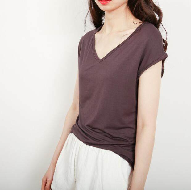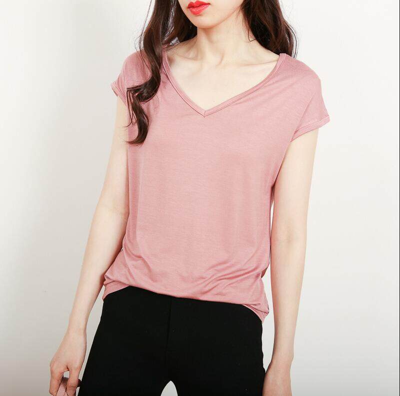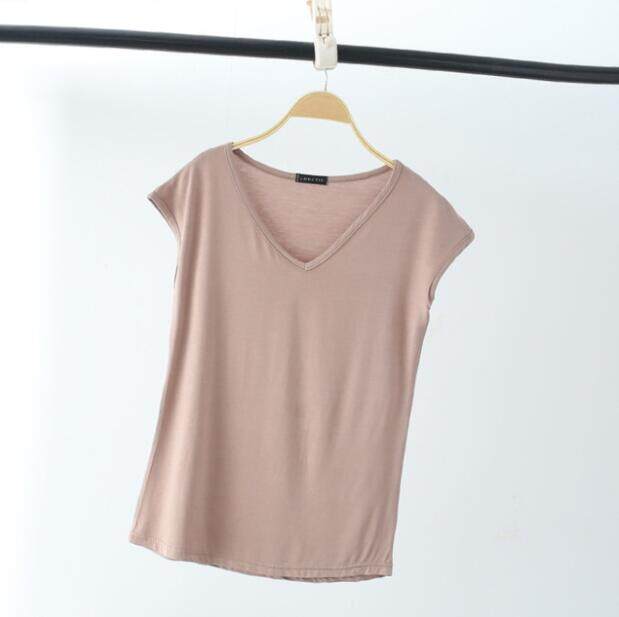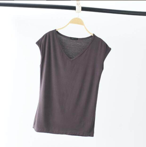 Ruizhijzg Bamboo Fiber T shirts for Women Home Wear Summer Sleeveless Shirt V-neck Top Plain White Pink Modal Cotton Black Dark Blue Green Ladies Slim Tshirt Korean Style