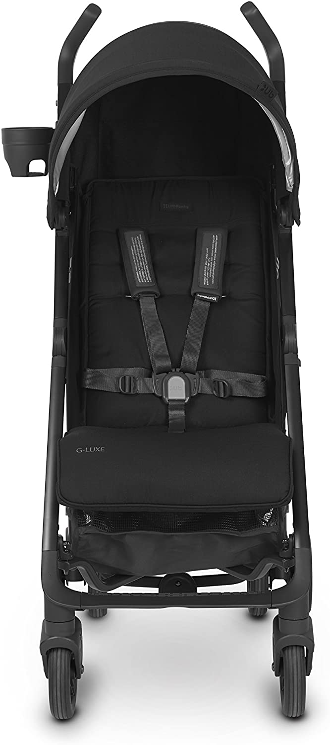 G-LUXE StrollerOne-handed actuated recline and adjustable footrestLarge stretch knit canopy with extendable UPF 50+ sunshade for great sun and wind protectionEasy to remove washable fabricsIncluded cup holder.Seat Orientation:Forward FacingStands when foldedThe UPPAbaby G-LUXE lightweight umbrella stroller provides flexibility every parent needs Whether an ideal companion for running errands or the perfect ride for catching the sites while your little one reclines for a quiet nap, the G-LUXE has your travel needs covered At just 15lbs you can easily pick up and carry over your shoulder or fold to a standing position and tuck into the corner. Lightweight aluminum frame with robust profile One-handed actuated recline and adjustable footrest High-performance, 5.75" diameter wheels Shock-absorbing, 4-wheel suspension One-step brake Ergonomic, PVC handles for comfort and easier pushing Hand-level folding triggers-no foot action required Large stretch knit canopy with extendable UPF 50+ sunshade for great sun and wind protection Stands when folded Easy to remove washable fabrics Convenient carry strap 5-point harness Updated large, easy-access basket with 10 lb. weight limit Removable cup-holder included