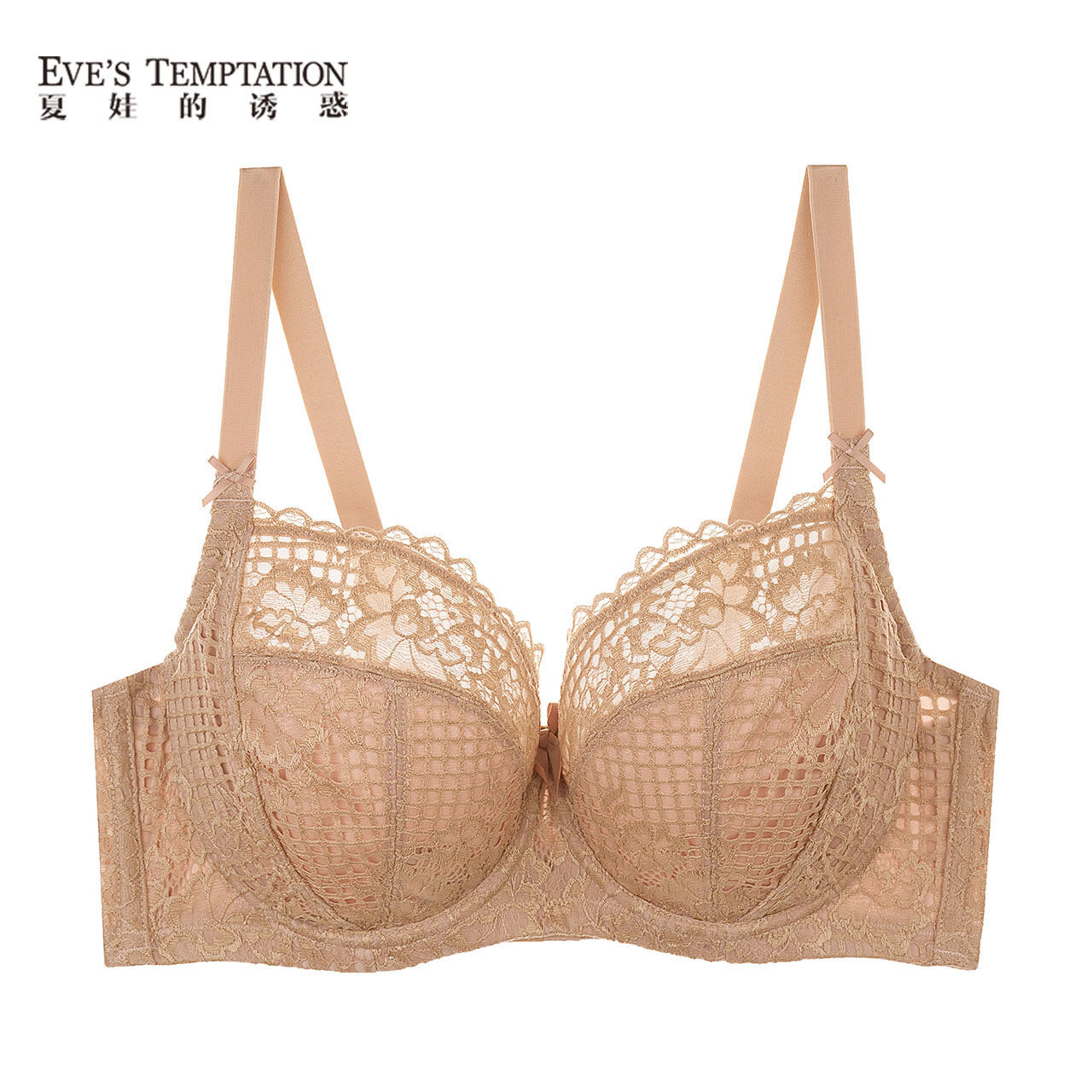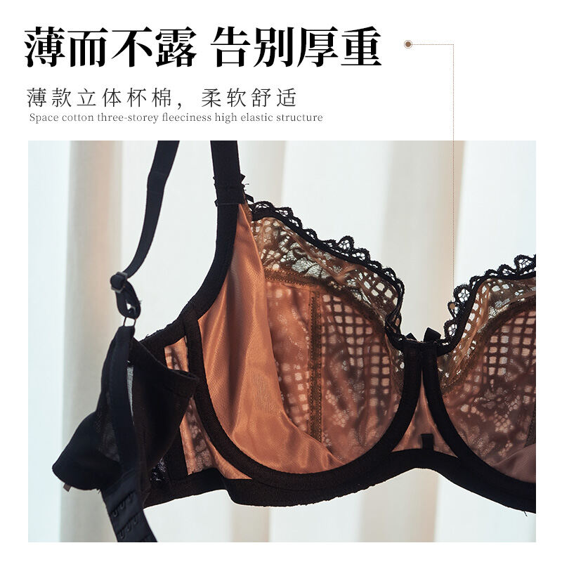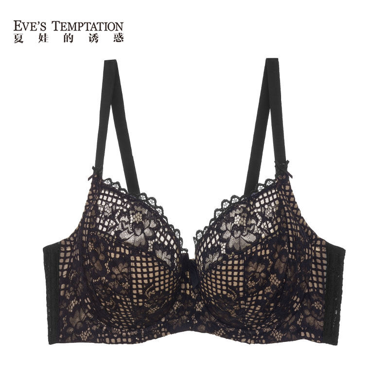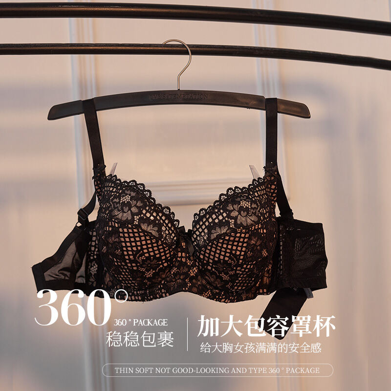 Eve's Temptation Aili Underwear Women's Big Chest Show Small and Thin Lace Widened Push up Summer Large Cup Large Size Bra