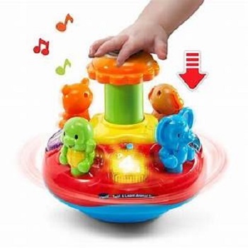 Spin and discover animals, sounds, shapes and numbers with the Push & Play Spinning Top! The press down plunger spins the animals round and round and helps your baby discover cause and effect relationships