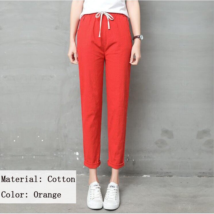 Women Trousers Female Cotton Loose Casual Pants Plus Size Seluar