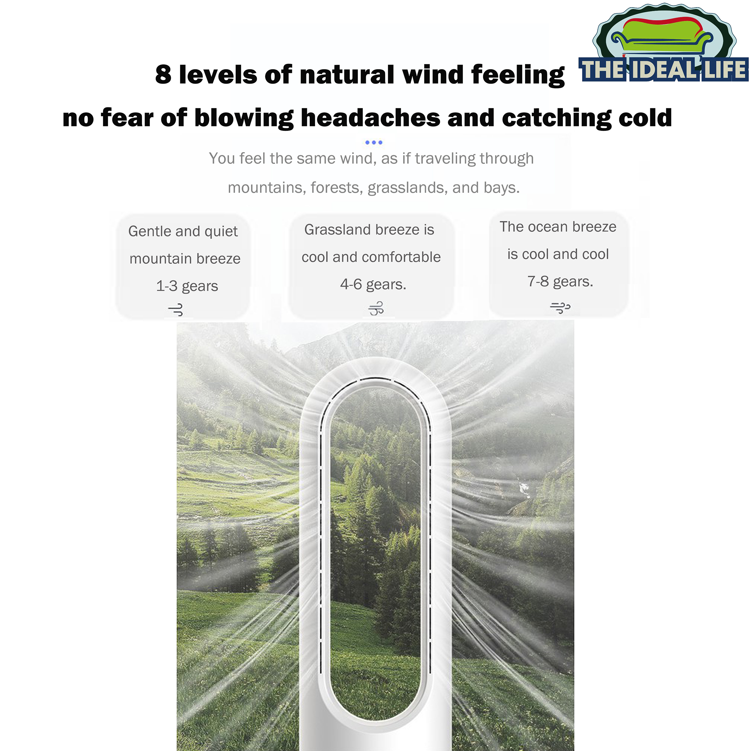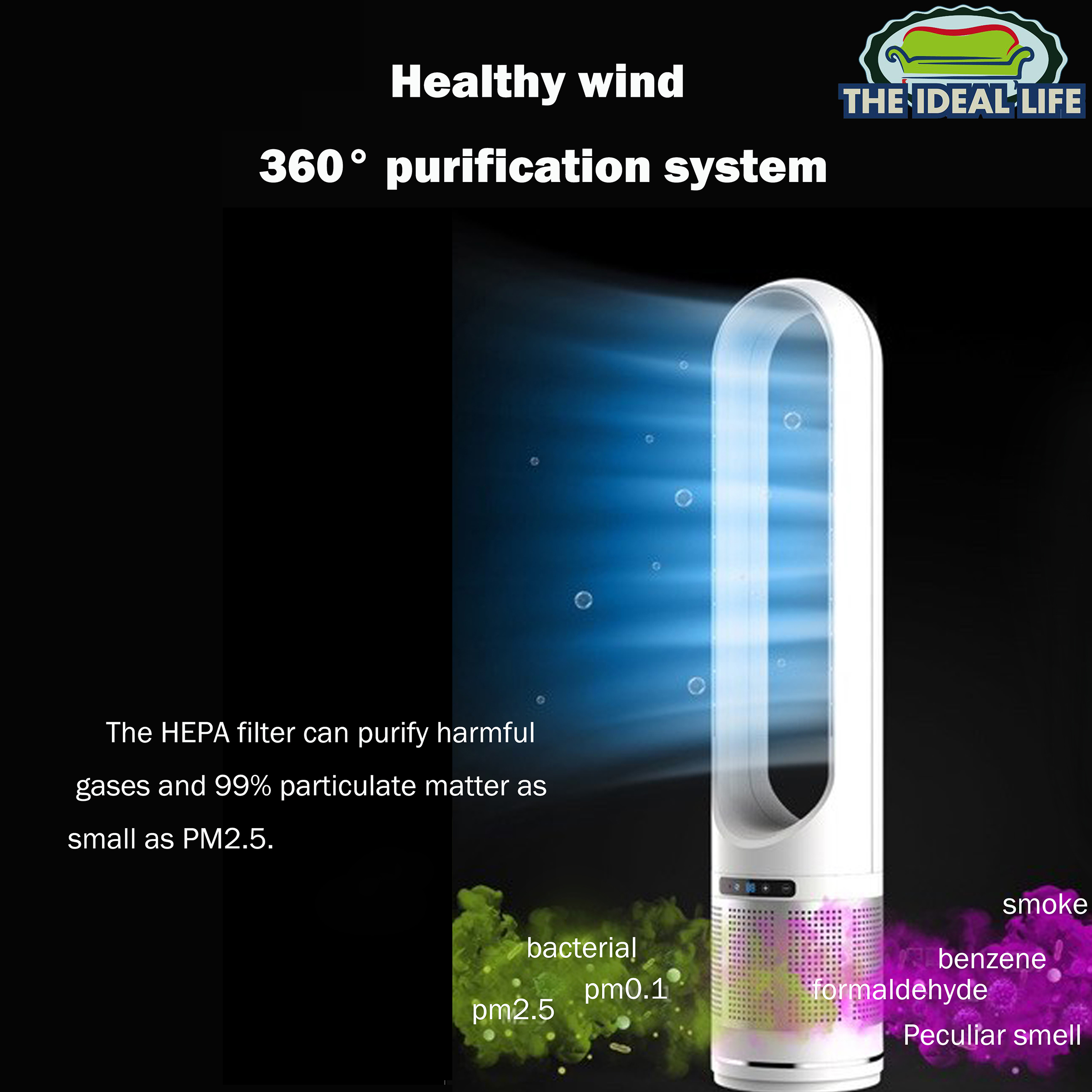 50 inches Bladeless Fan With Air Purification 8 Grades Speed Adjustable Tower Fan