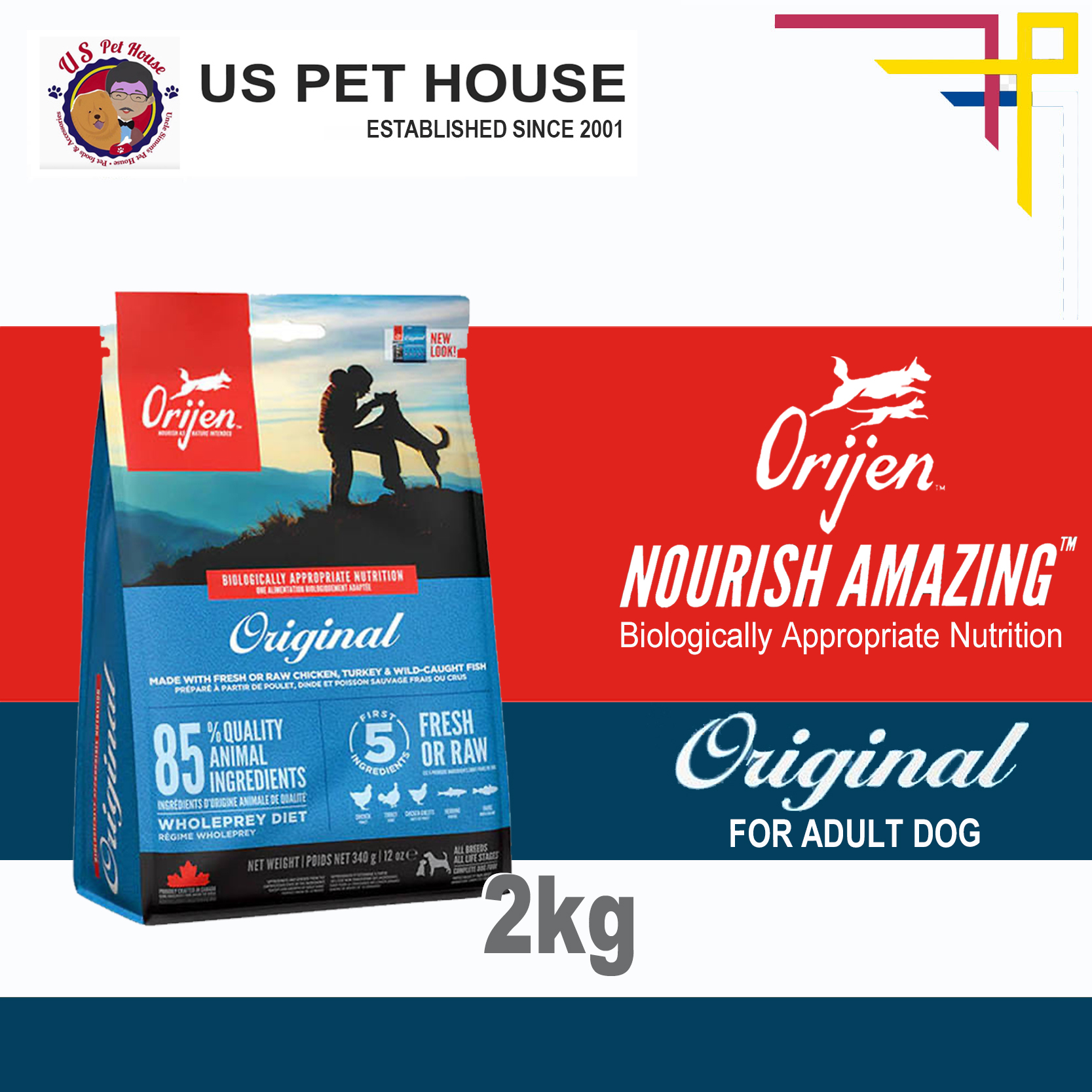 Help your dog thrive with the power of protein-rich recipes that provide peak nourishment. Dogs are ancestral carnivores, so they need a Biologically Appropriate diet rich and varied in whole animal ingredients. ORIJEN®Original diet is packed with 85%1quality animal ingredients like fresh or raw free-run2chicken and turkey, and wild-caught or sustainably farmed fish. Packed with WholePrey animal ingredients like organs and bone, ORIJEN food is made with the most nutrient-dense, succulent parts of the prey to deliver the nutrition dogs need. The result is a diet for your canine companion that is beyond comparison.