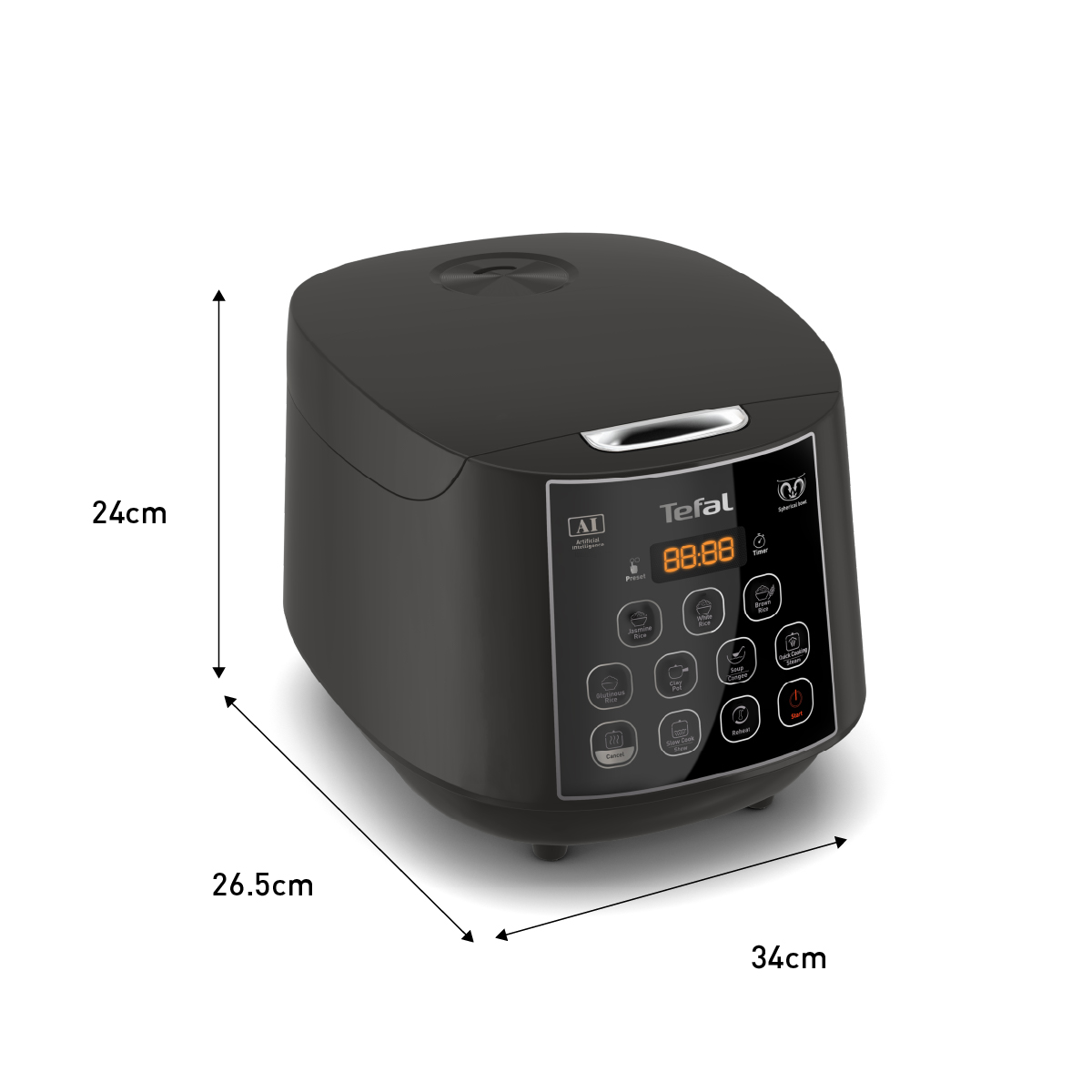 Tefal Easy Plus Rice Cooker 1.8L RK736B - 11 programmes, Artificial Intelligence, spherical pot, removeable inner lid, 10 cups