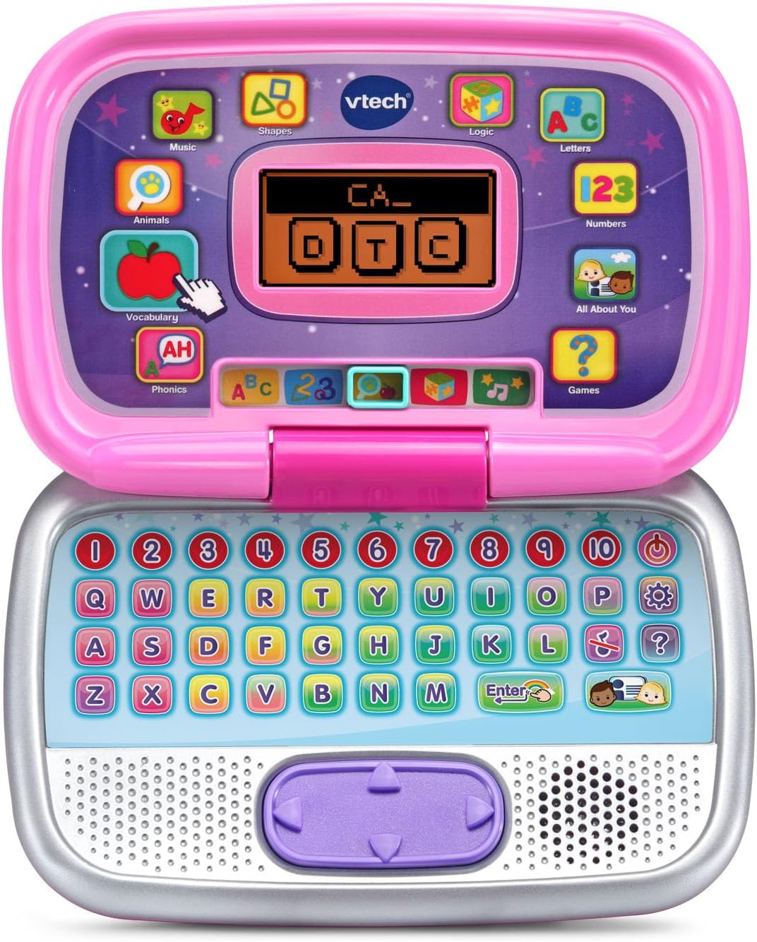 - Sleek, black toy laptop like Mom and Dad's has 30 learning activites with leveled learning. Personalize it with your child's name, age, avatar and more