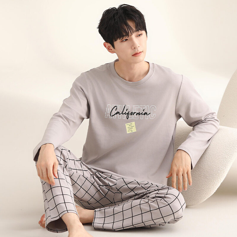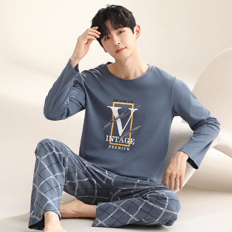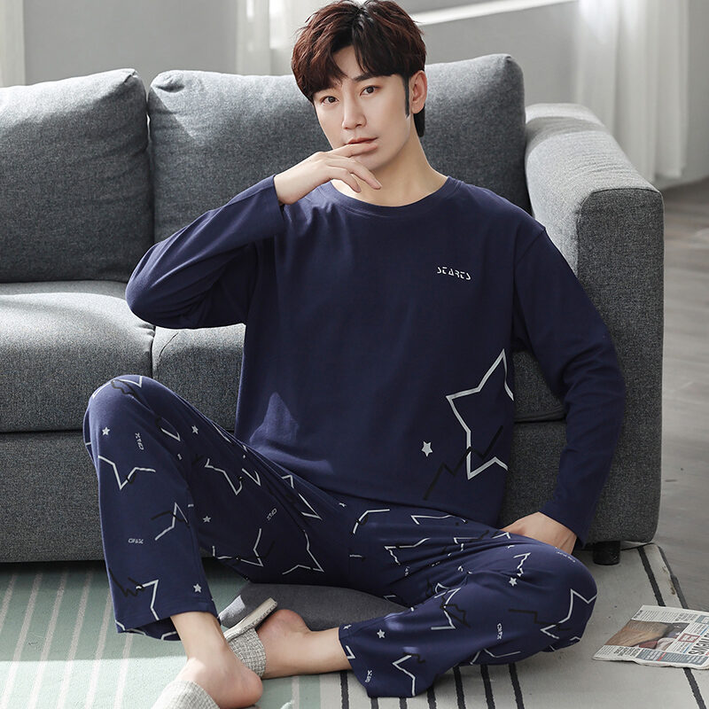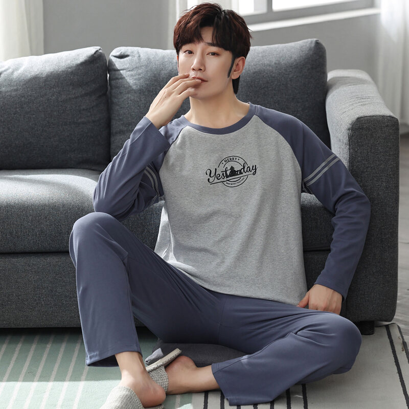HY Men's Pajama Sets Spring Summer Man Pajamas Set Simple Sleepwear long Sleeve Printed Pajamas For Men Top Pant Casual Outwear