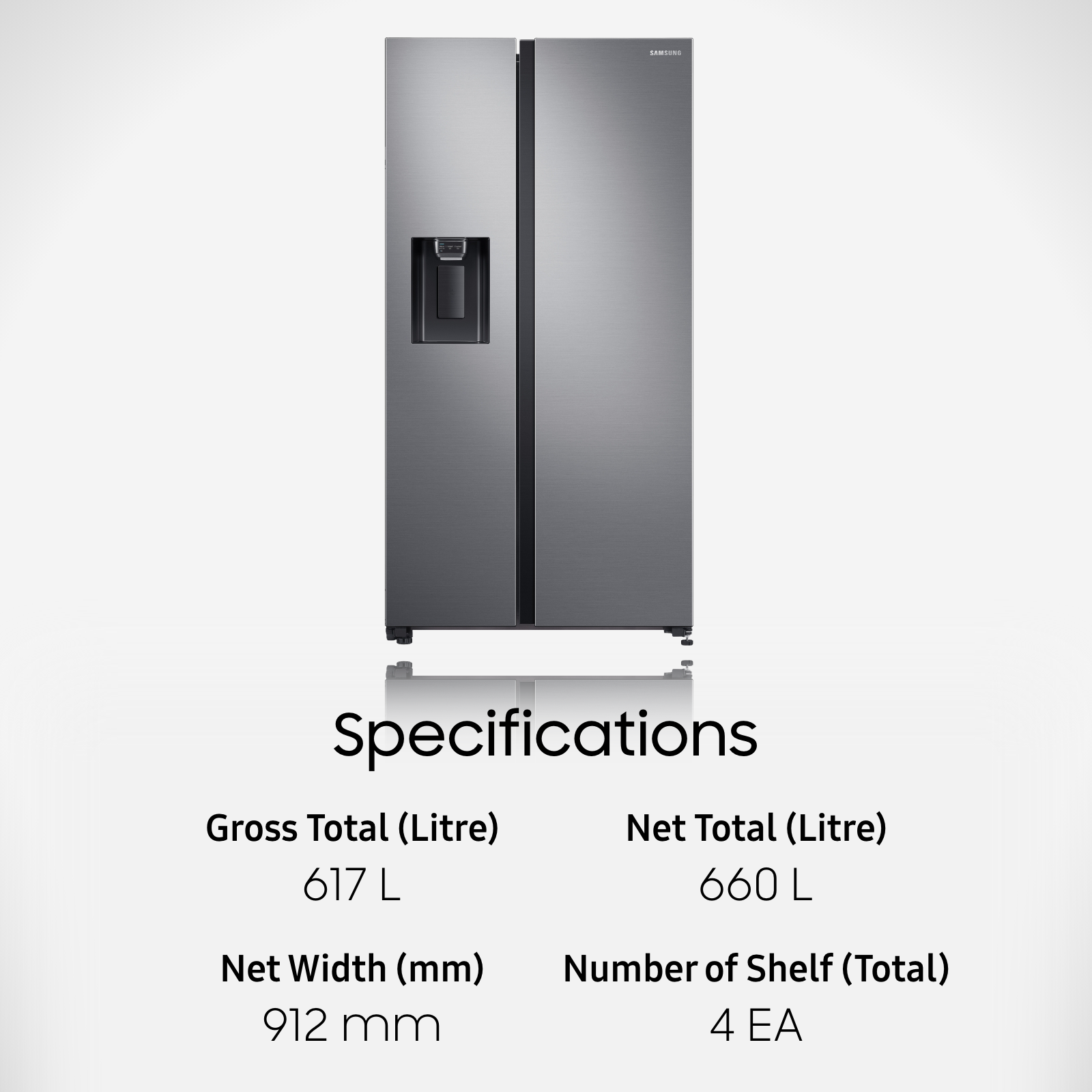 Samsung RS64R5306M9/SS, Side-by-side Refrigerator, 617L, 3 Ticks
