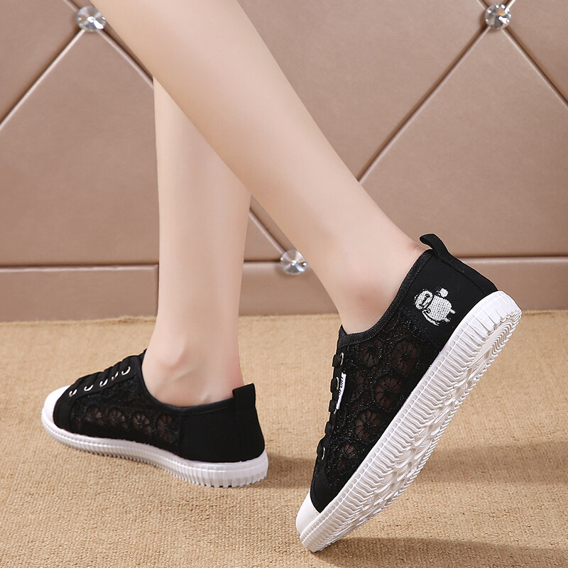 Women White Flat Shoes Korean Style Sneakers Plus Size 41 Lace Up Ladies Rubber Casual Women Shoes