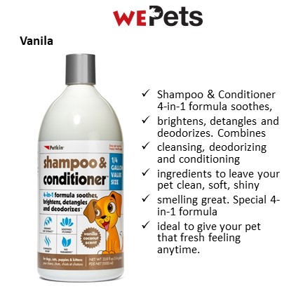 • Shampoo & Conditioner 4-in-1 formula soothes, brightens, detangles and deodorizes. Combines cleansing, deodorizing and conditioning ingredients to leave your pet clean, soft, shiny and smelling great.
