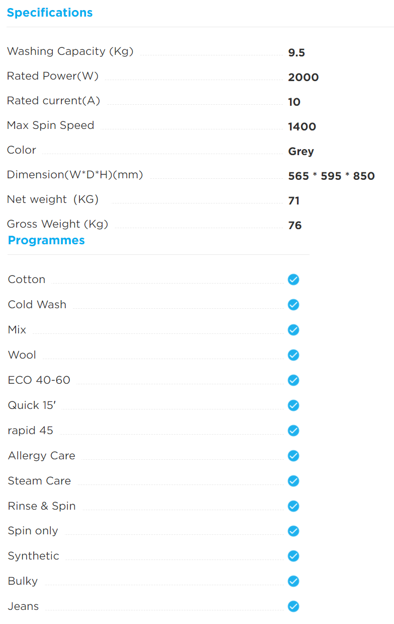 MIDEA MF200W95B 9.5KG INVERTER FRONT LOAD WASHING MACHINE + MIDEA MDK1088HP 10KG GREY FRONT LOAD HEAT PUMP DRYER