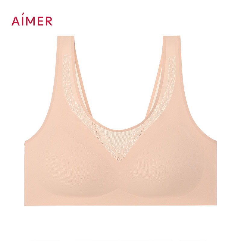 Seamless vest-style bra to free the bustLightweight cups, tank top, wireless, netted edgesOne-piece woven lace with romantic details and reduced marks3cm shoulder straps to reduce shoulder pressure