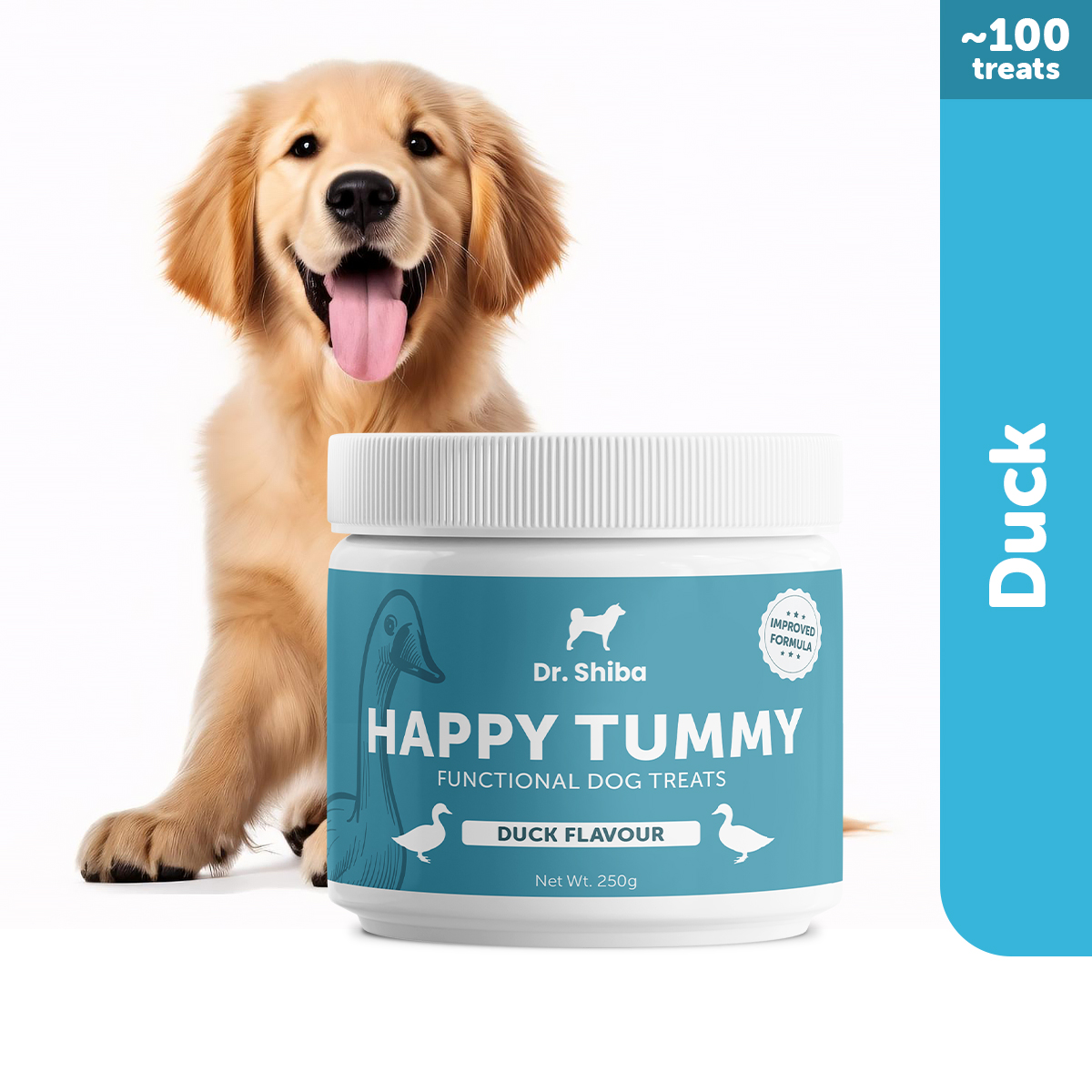 ✅ Are Happy Tummy treats considered dog essentials? If your dog frequently suffers from upset tummies or has irregular bowel movements, then yes! Happy Tummy dog supplement treats help with digestion, resulting in a more comfortable, happier pup.