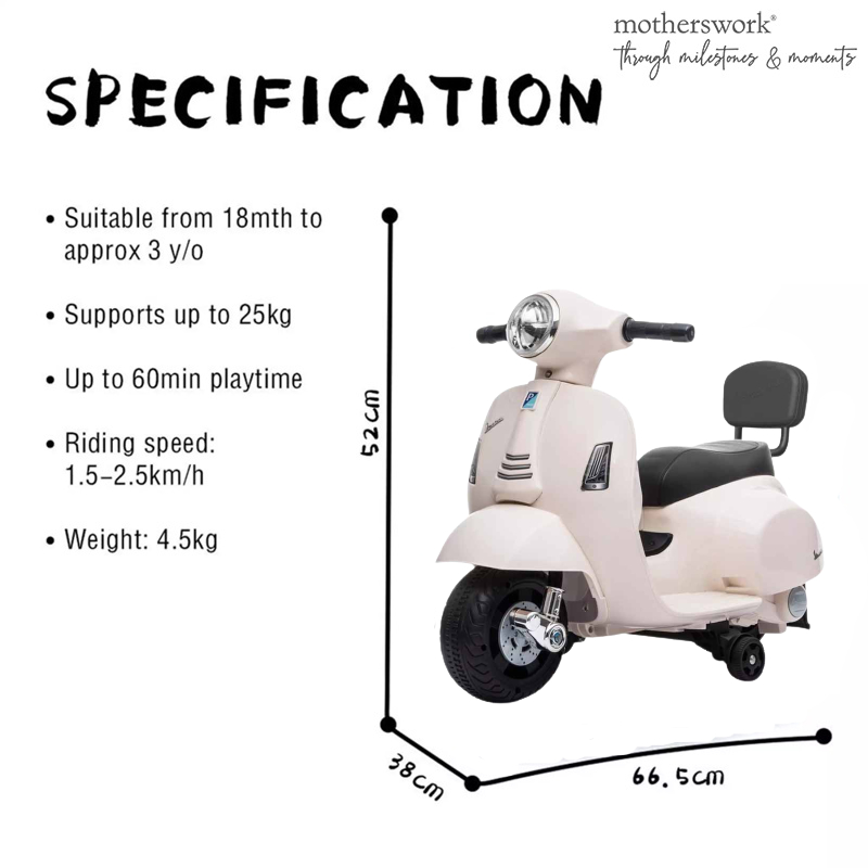 [4 Colors] Vespa Kids GTS Mini Ride On Electric Scooter With LED Light - 18 - 36M | kids ride on toys / kids electric motor bike