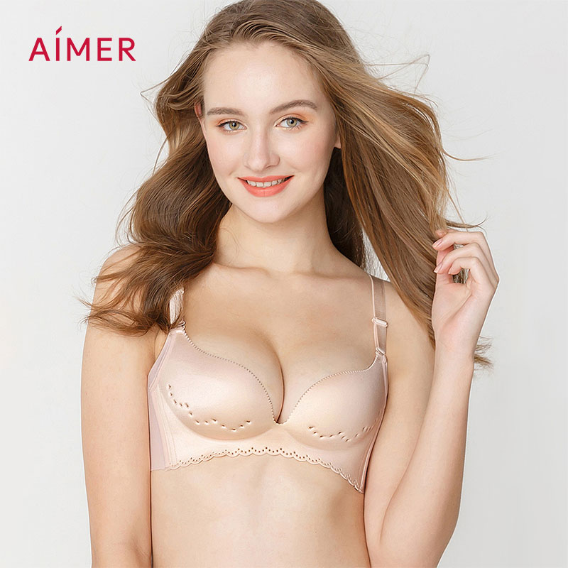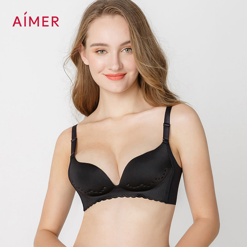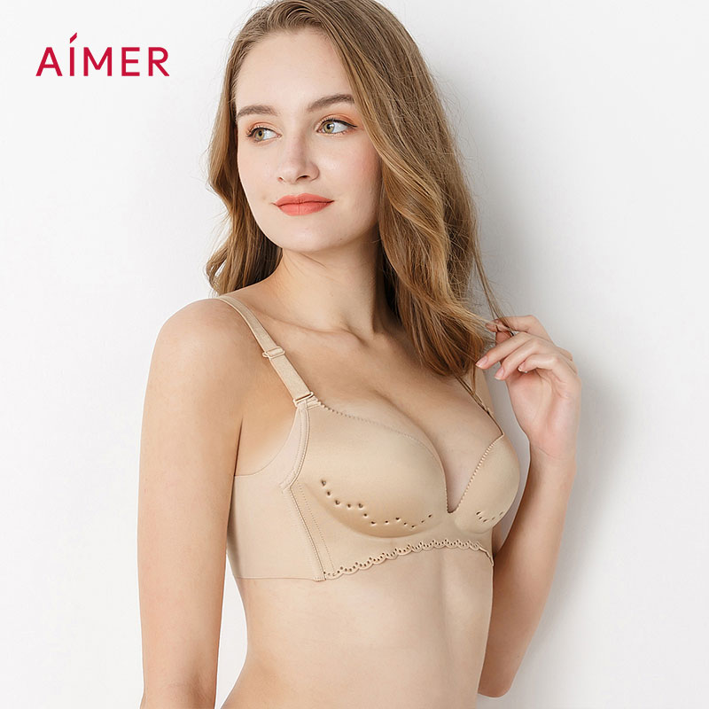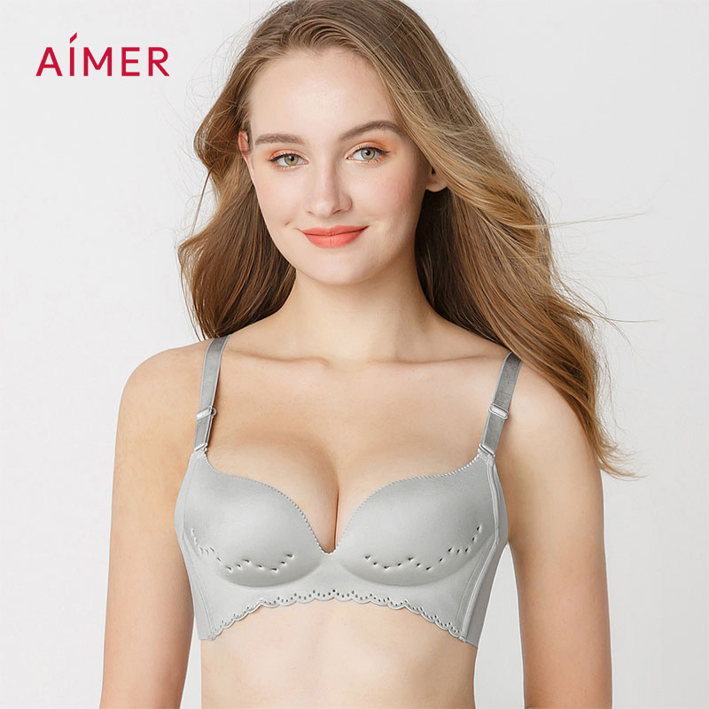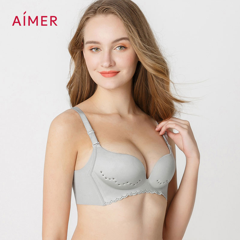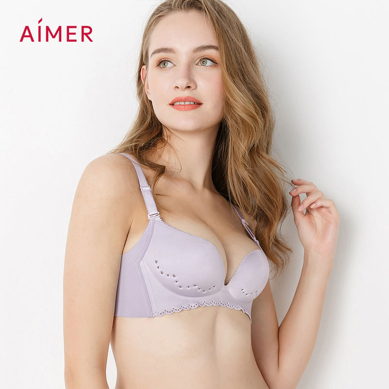 Aimer Wireless Bra Plain Hole Breathable Lingerie Push Up Thin Underwear AM174591