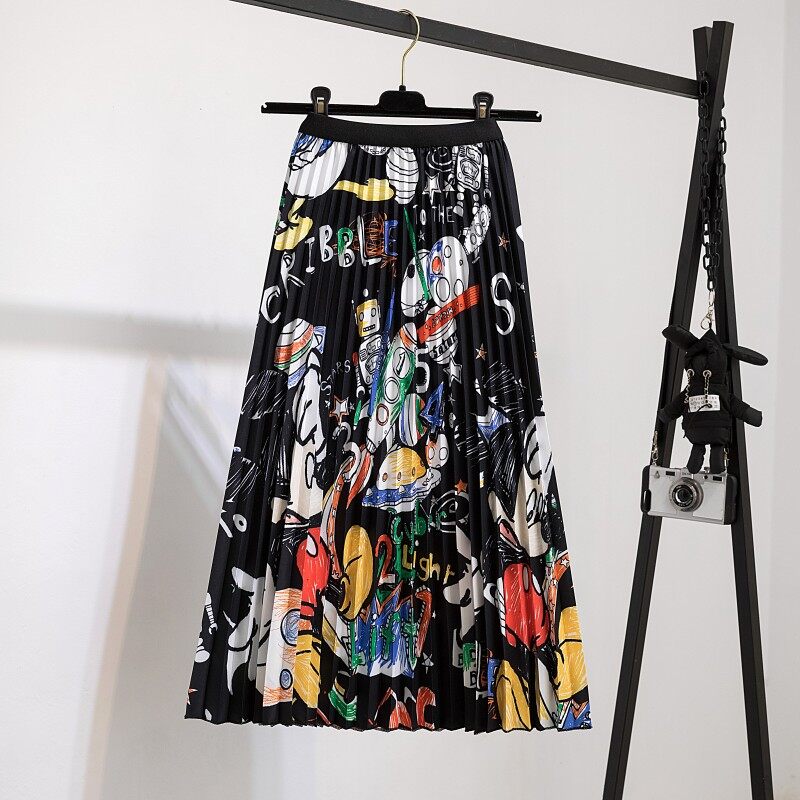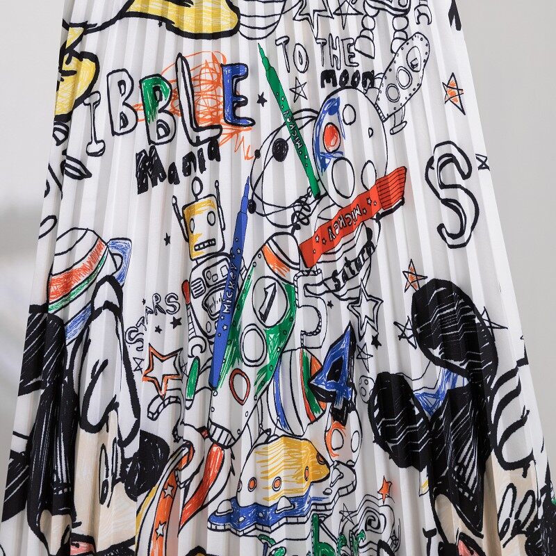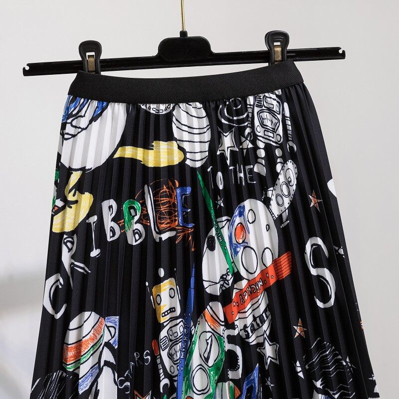 Fashion Women Printed Pleated Skirts