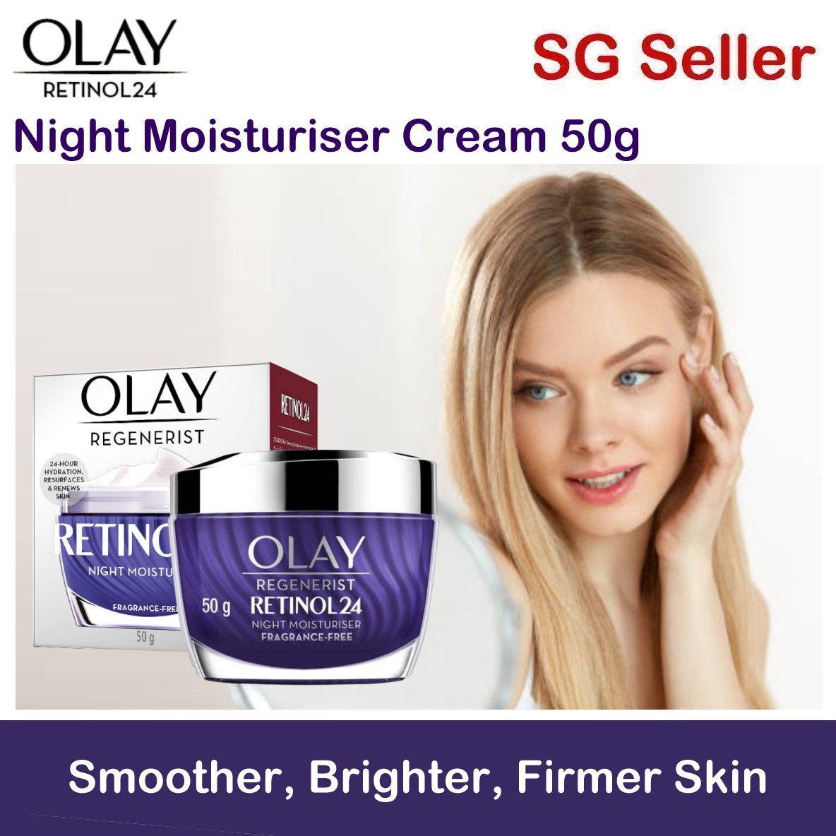 OLAY Regenerist Retinol 24 Night Moisturiser Cream 50g – Options : 1 Can & Value Bundle of 2 Cans – Hydrates Skin for 24 hours – Smoothness , Brightness , Firmer Skin – Reduce Fine lines & wrinkles ,