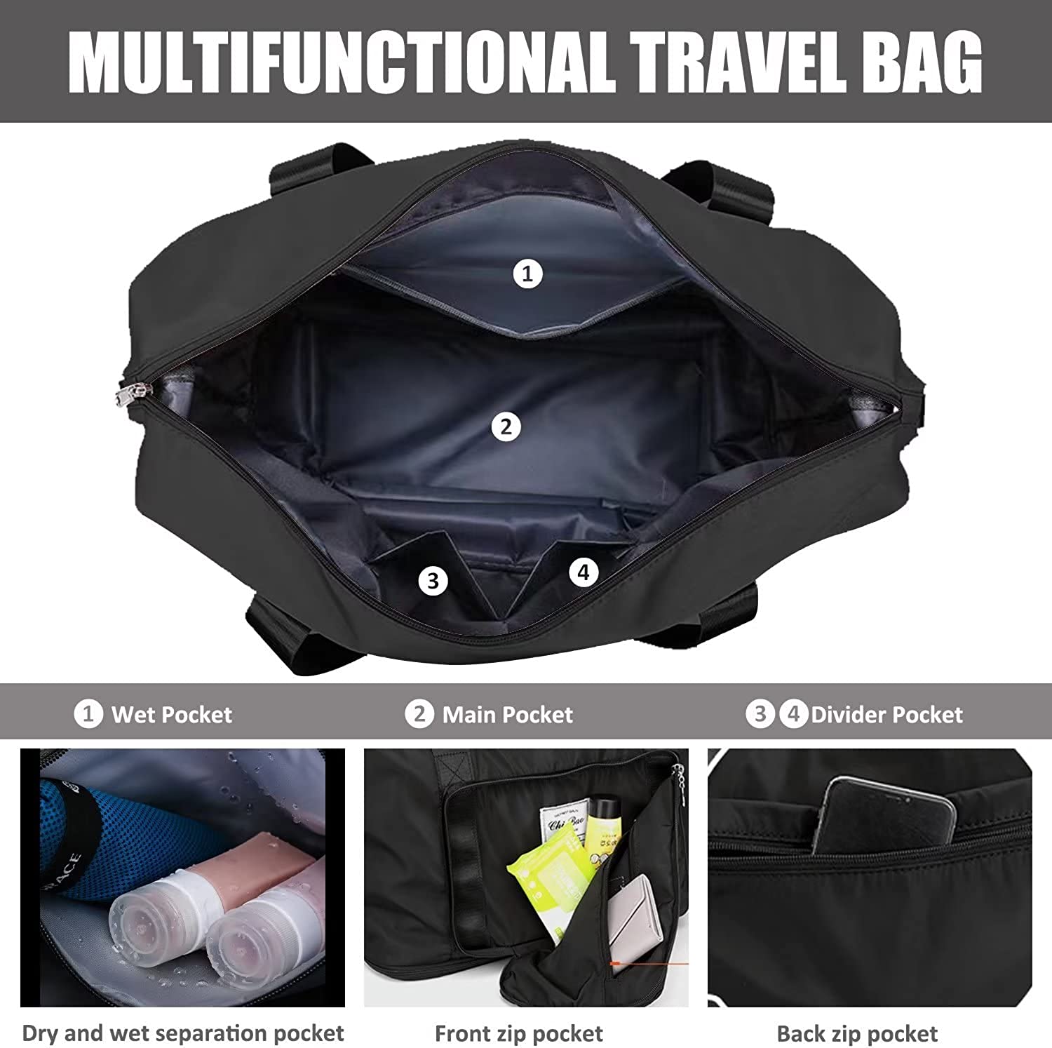 【Large Capacity】The dimension of this bag is 41 x 23 x 36cm/16x9x14in.It has 34L super large storage space to hold a lots of daily-use staffs like laptop,clothes,shoes,towels,bathing suits,gloves,toiletries