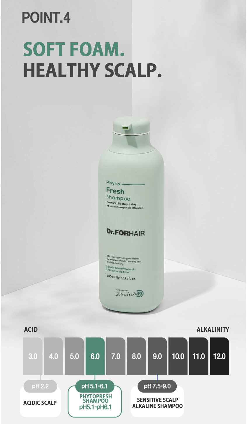 [Dr. For Hair] Phytofresh Oily Shampoo 500ml/Hair/Sebum Care/Oily Scalp Solution/Deep Cleansing/pH Balance/Healthy/Mild/Plant-Derived Ingredients/Herb Clean Complex/Korean Cosmetics/Low Irritation