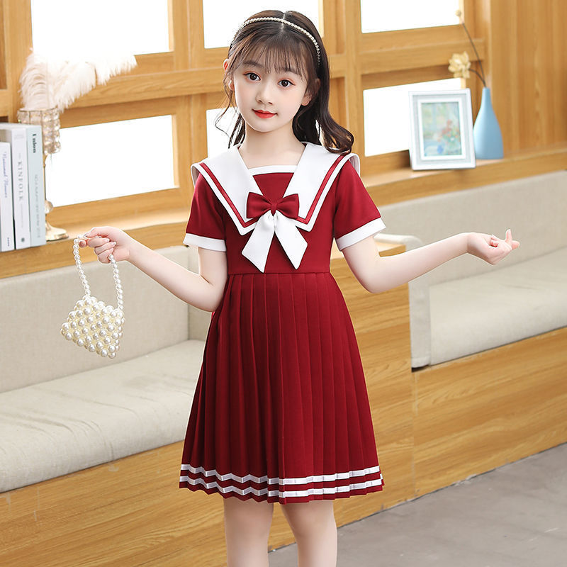 This girl's short-sleeved dress is perfect for summer. It has a stylish design that will make your child look like a princess in a Lolita or JK fashion. The navy blue color fits well with the nautical theme, and the dress has a playful and elegant feel to it. Made for young girls, this dress is perfect for any dress-up occasion, from parties to family gatherings.