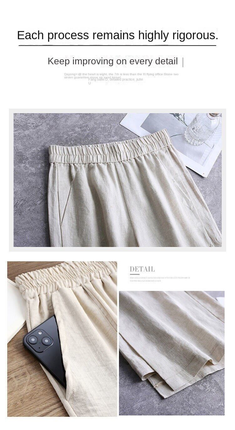 Wide leg pantsHigh waistedCotton and hempNinth pantsSimplified Commuting/Korean Version