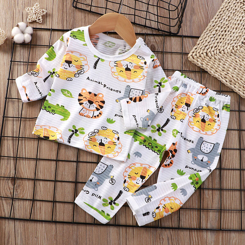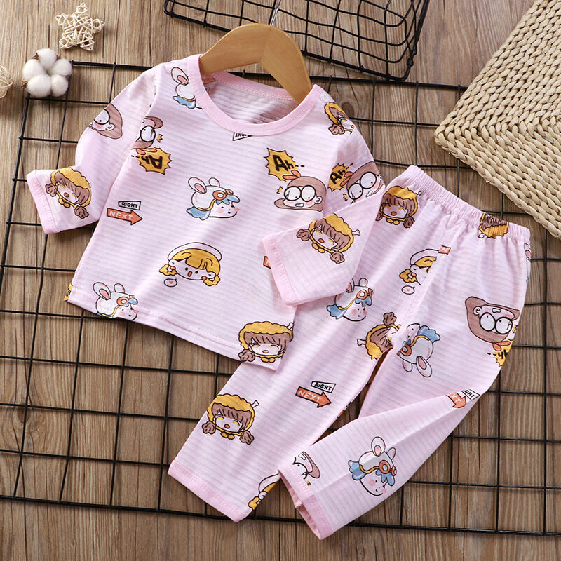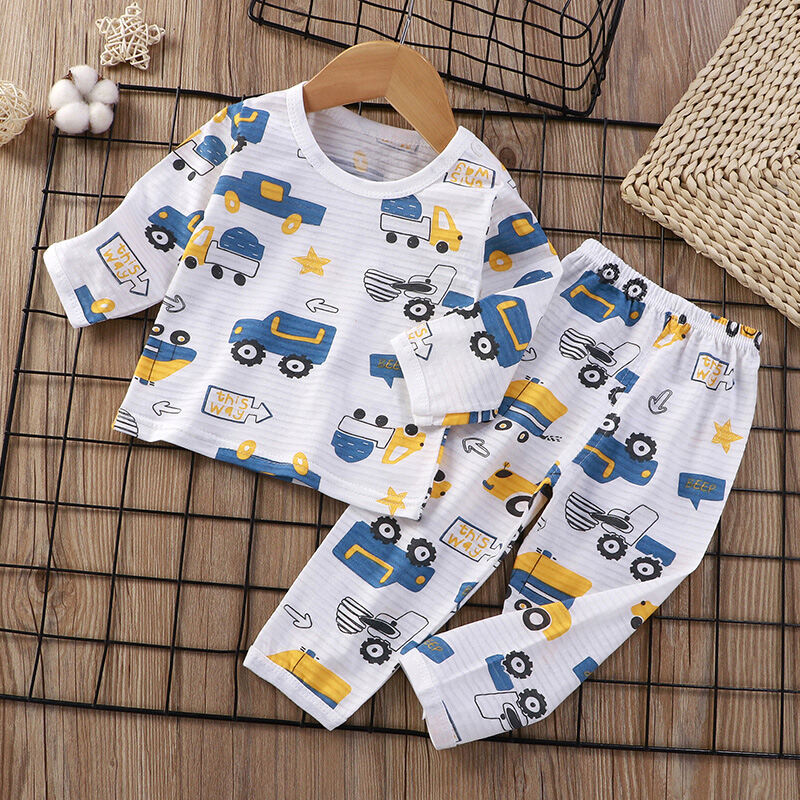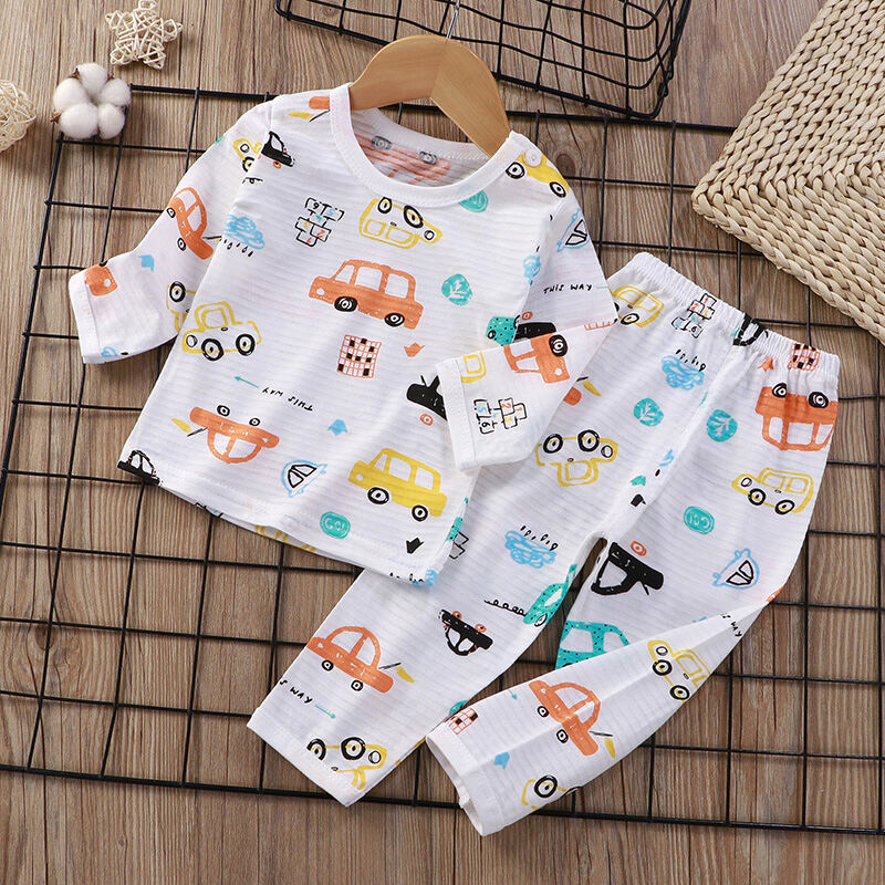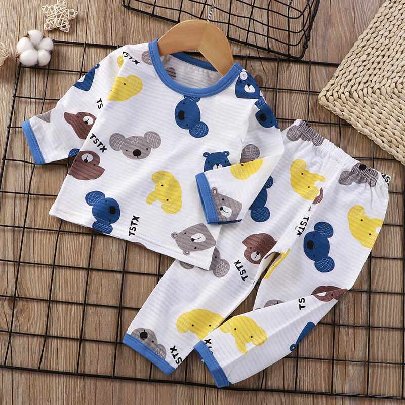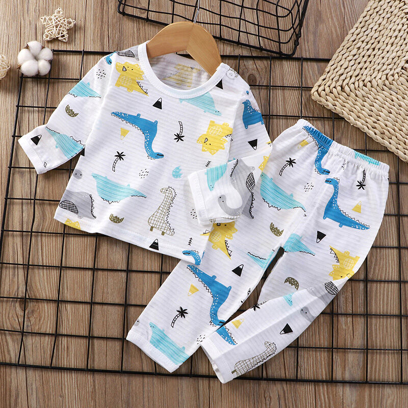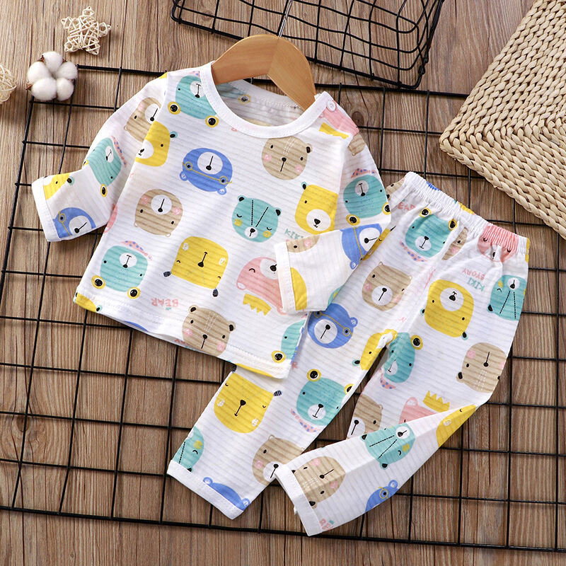Baby Home Air Conditioning Clothes Pure Cotton Thin Summer Baby Long-Sleeved Children's Pajama Set Boys and Girls Spring and Autumn