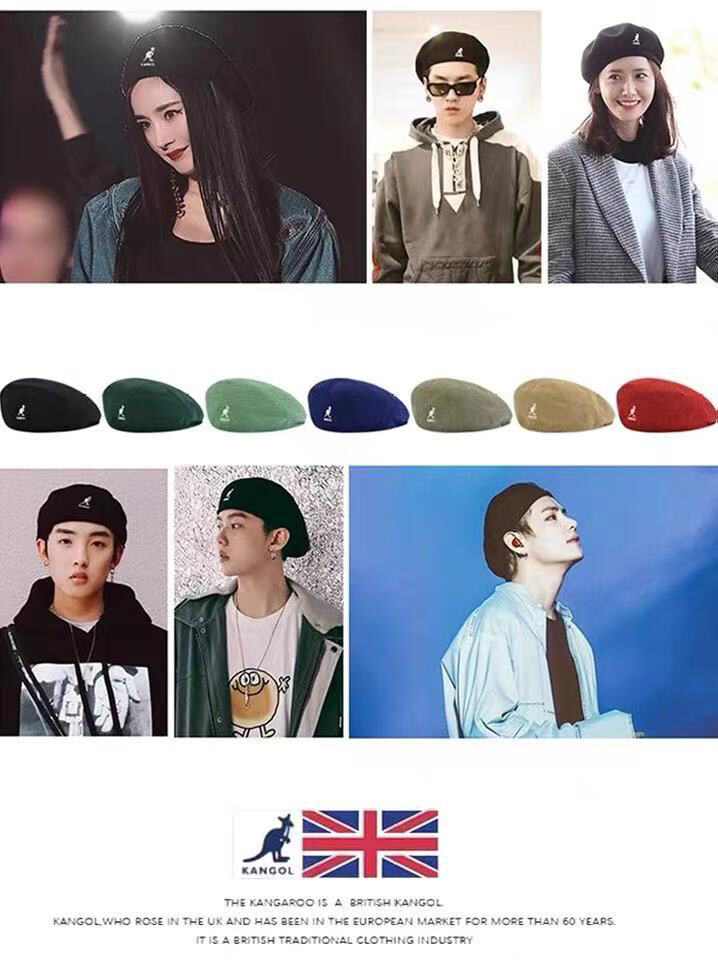 Kangaroo Pattern Beret Black kangol Mesh Breathable Hat Casual Topi Men Vintage Beanies For Women