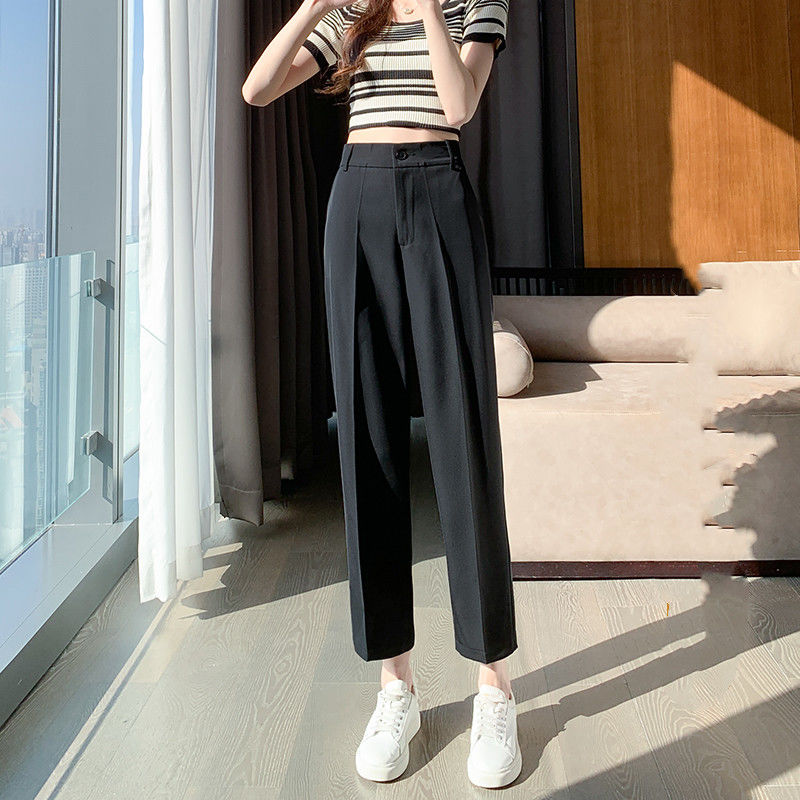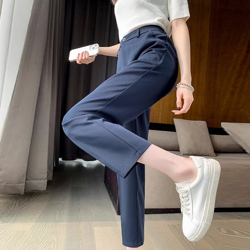 ins navy blue Suit pants for women Korean style high waist professional office fashion straight skinny pants