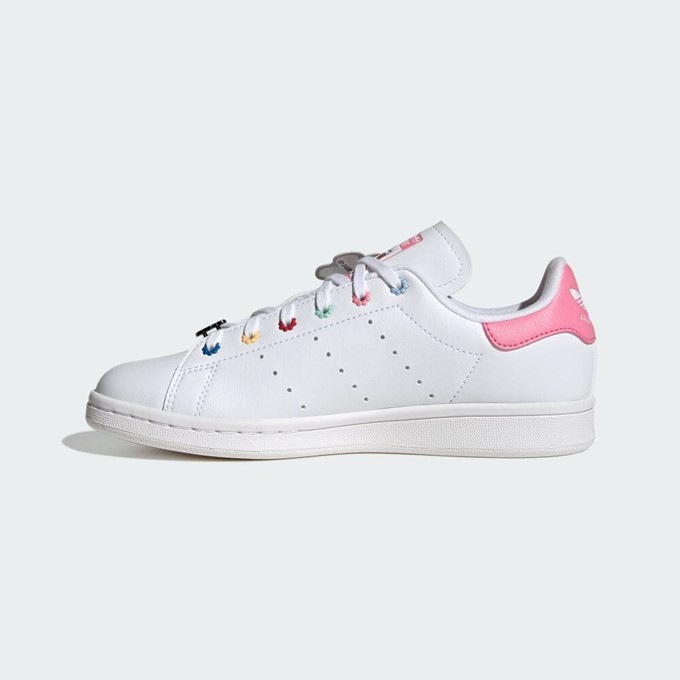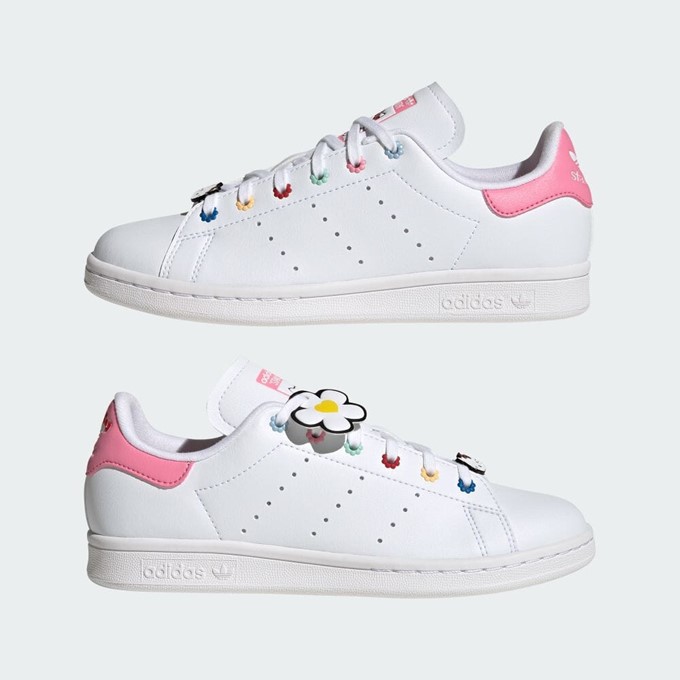 Elevate your summer style with the enchanting ADIDAS ORIGINALS X HELLO KITTY 3rd COLLABORATION STAN SMITHS SHOES FOR LADIES, crafted partially from recycled materials. These shoes celebrate the enduring spirit of summer by featuring Hello Kitty, the embodiment of friendship, in their design. Retaining classic Stan Smith elements like the clean white upper, perforated 3-Stripes, and contrasting heel tab, these kicks also incorporate playful colorful flower beads for a touch of whimsy. With a cushioned sockliner for superior comfort, step into a world of Hello Kitty charm and sustainability. Don't miss out on this limited-edition collaboration that embodies the essence of summer and style.