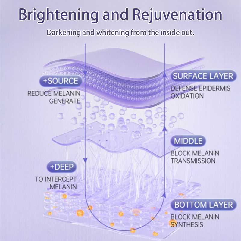 Enriched with niacinamide, arbutin, VC ethyl ether and other brightening and whitening ingredients to make the skin tender, delicate and smooth, can effectively break down melanin, persistent use, the skin more white and beautiful. Can effectively make the body whiter