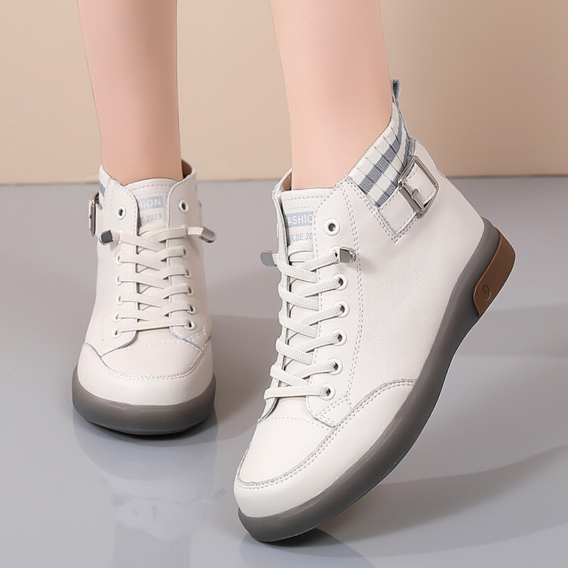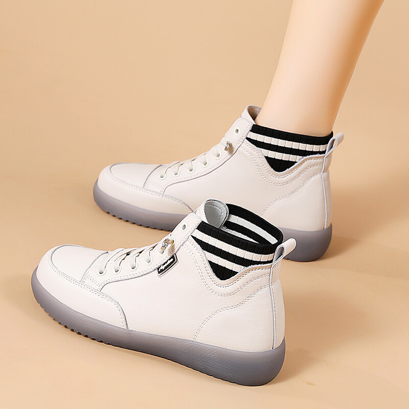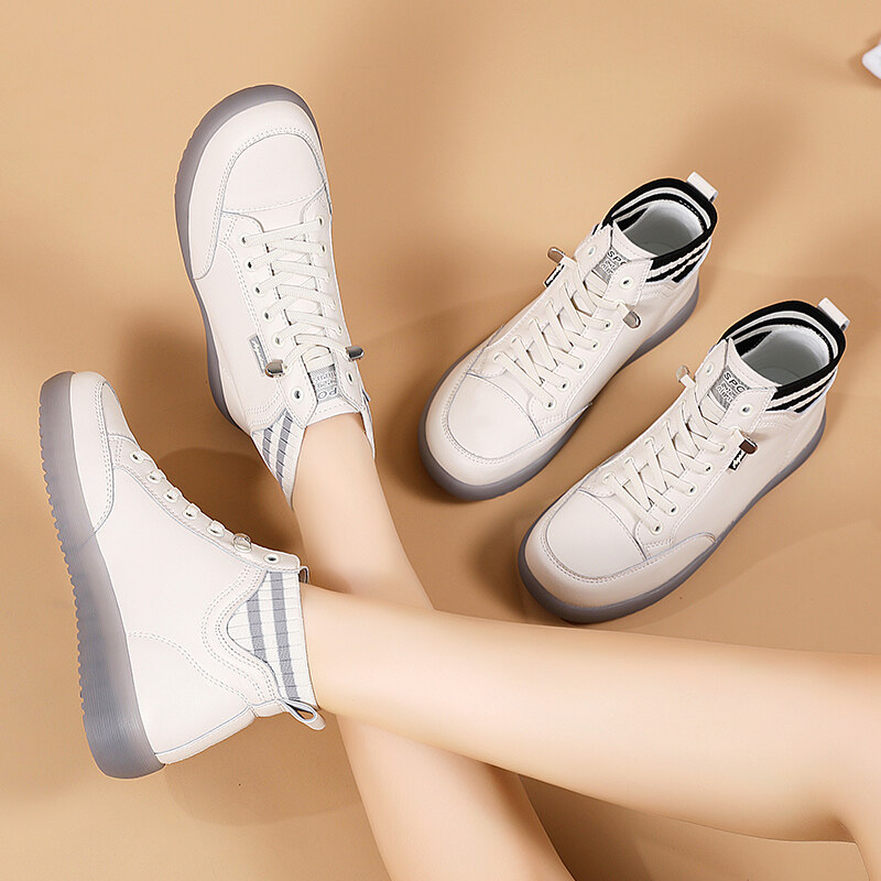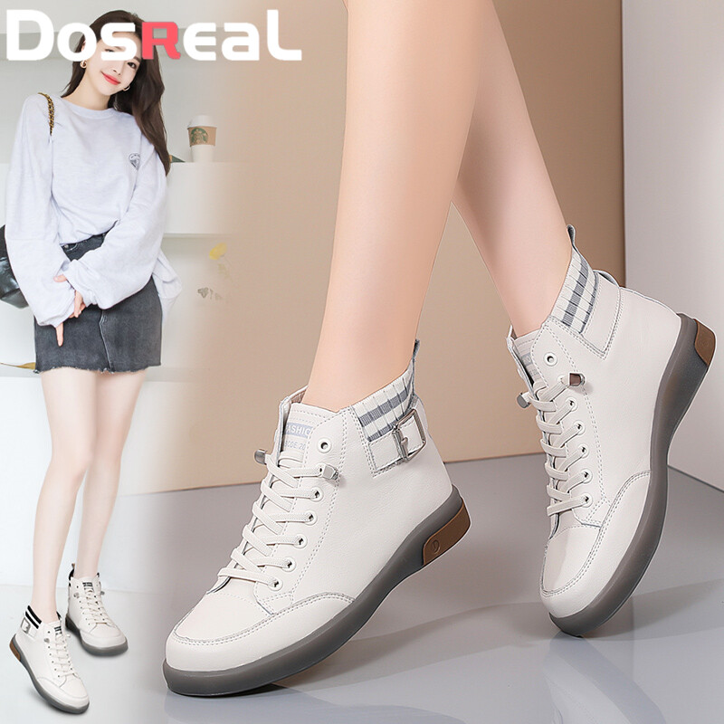 DOSREAL Korean Ladies Fashion Boots for Women Office Lady Elevator Shoes Genuine Leather Slip On Thick Bottom Casual Ankle Boots Ladies Fashion Boots