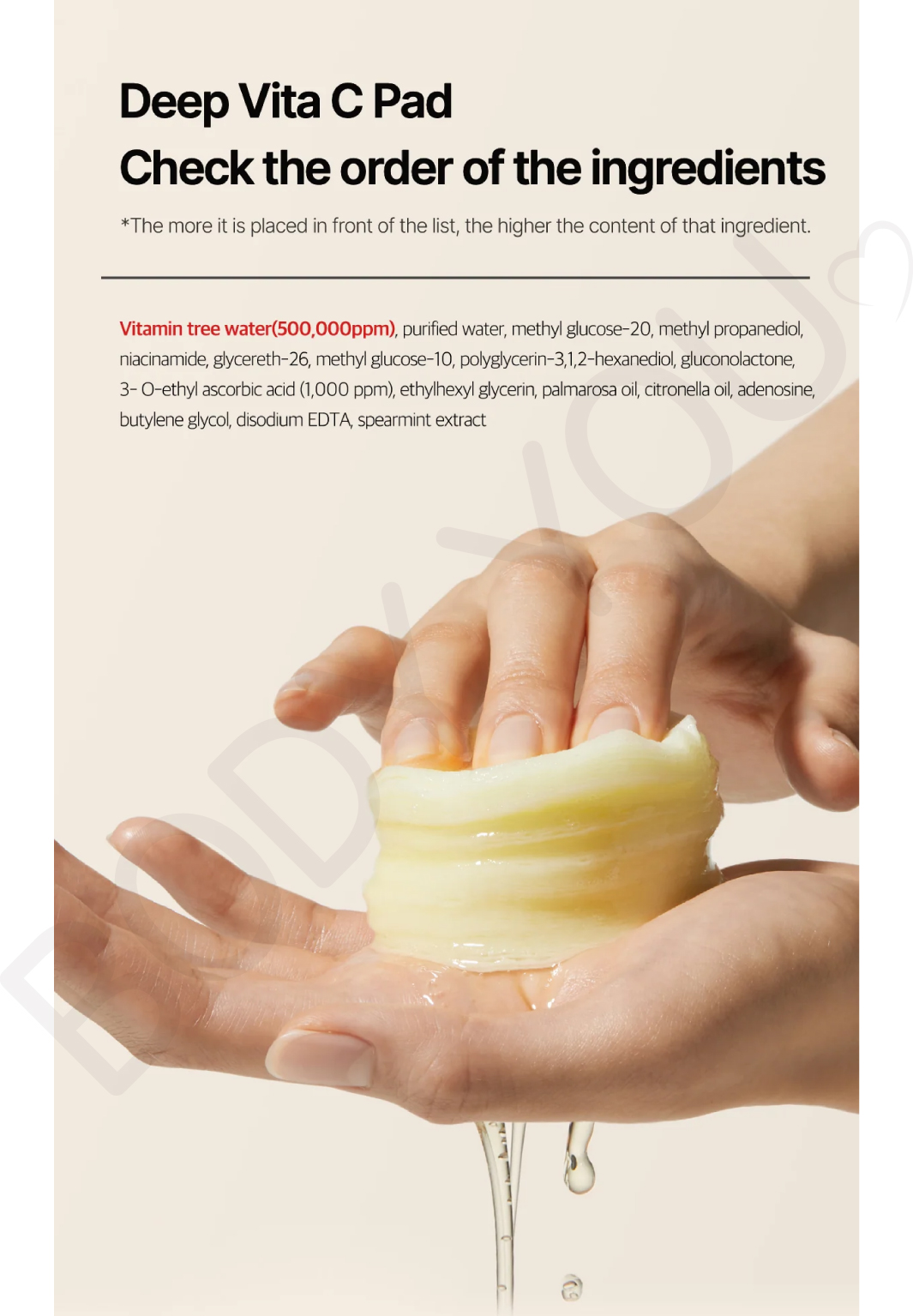 - Contains 1,000 ppm of vitamin c derivatives