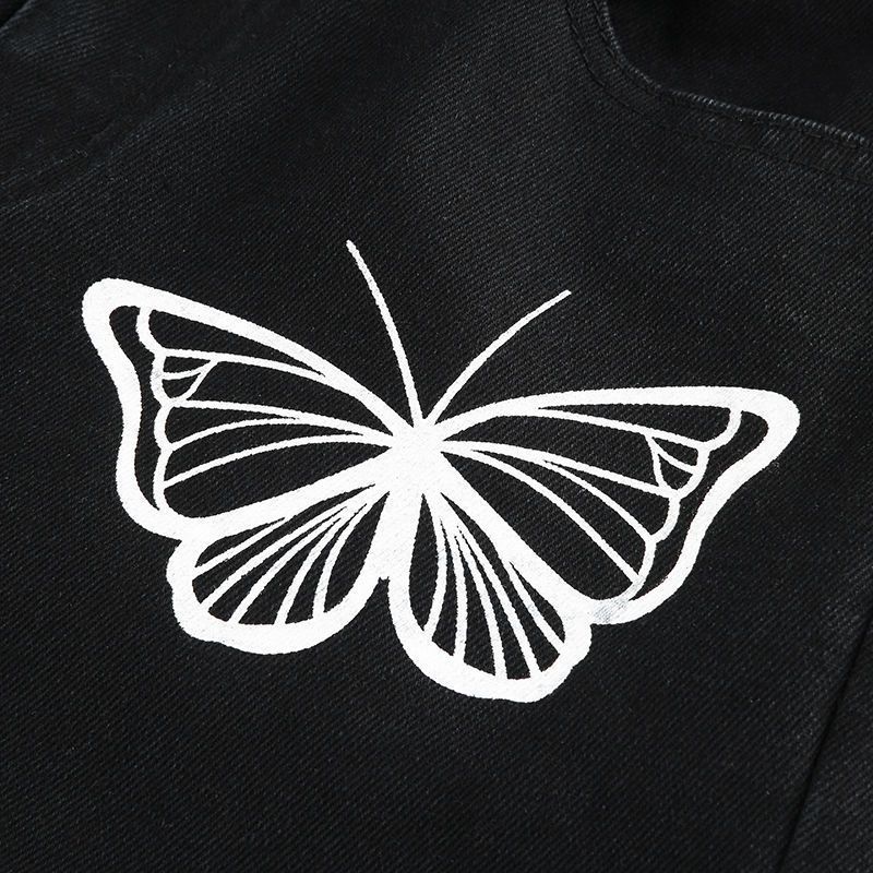 Design Butterfly Personalized Printed Jeans Women's Korean-Style R Slimming Loose All-Match Black Straight Pants