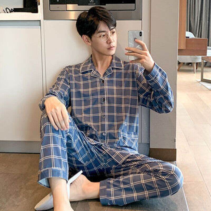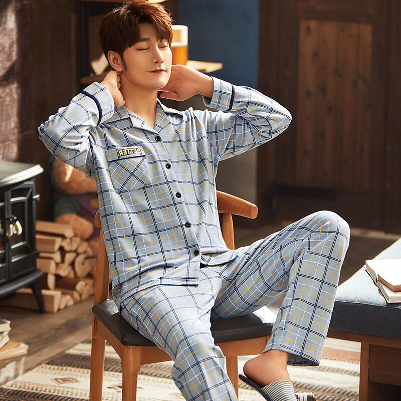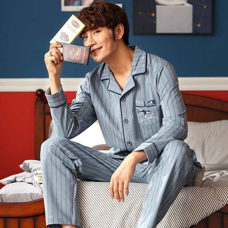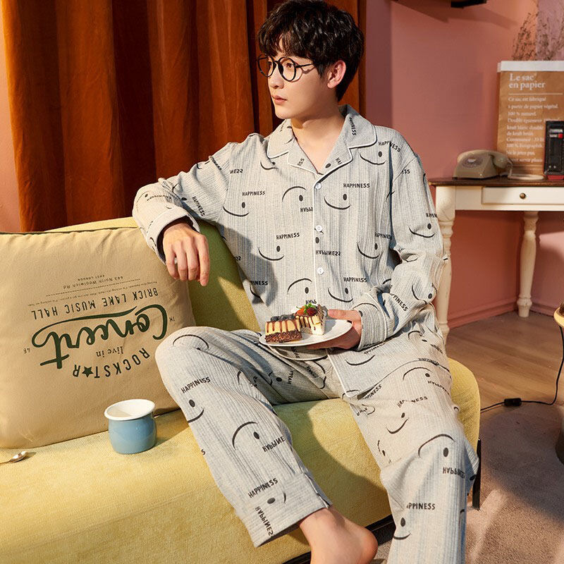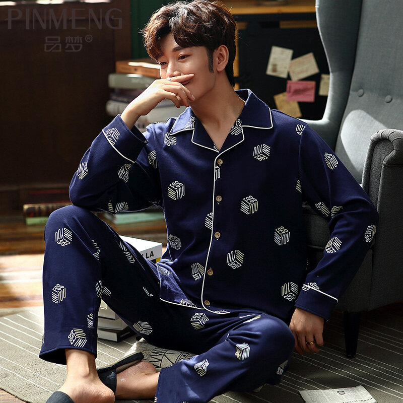 HY Men's Pajama Sets Spring Summer Man Pajamas Set Simple Sleepwear long Sleeve Printed Pajamas For Men Top Pant Casual Outwear