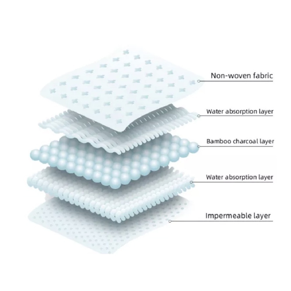 ✅ First layer made of non-woven cloth/fiber, allowing urine to flow through quickly and ensuring no stains on the pad