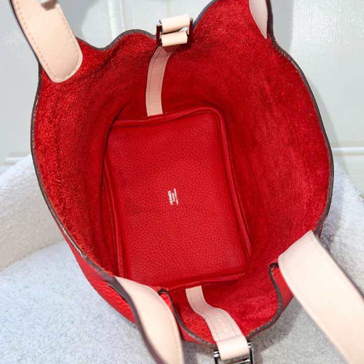 (Pre-loved) Hermes Picotin 18 in Bi-colour (Rouge Tomate Clemence / Rose Eglantine Swift) and PHW