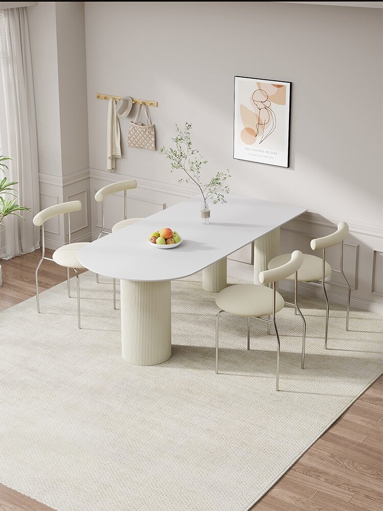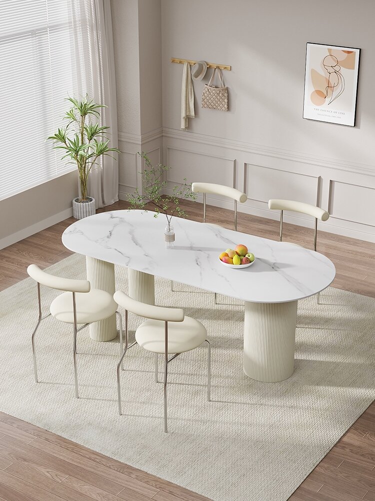 Cream Style High end French style Island Table Oval Pure White Rock Plate Dining Table Light Luxury Dining Table Home Simple