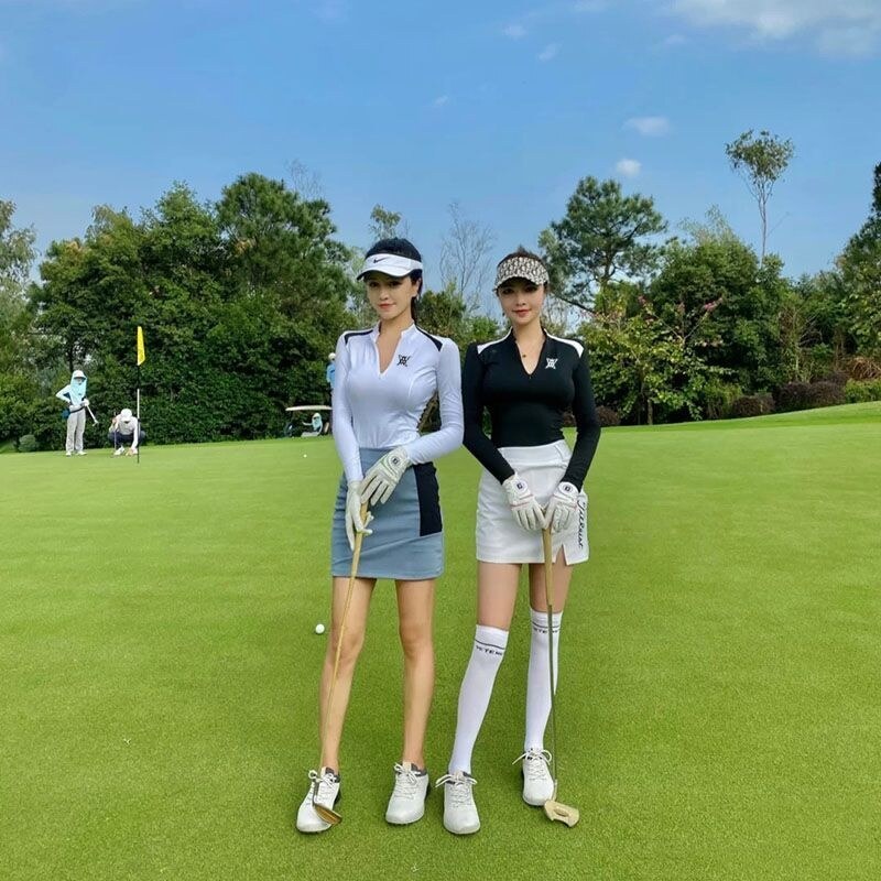 ANEW New golf clothing women's jersey suit zipper round neck versatile top hip-covering skirt outdoor sports quick-drying NEW Korean original 2023