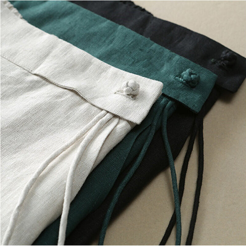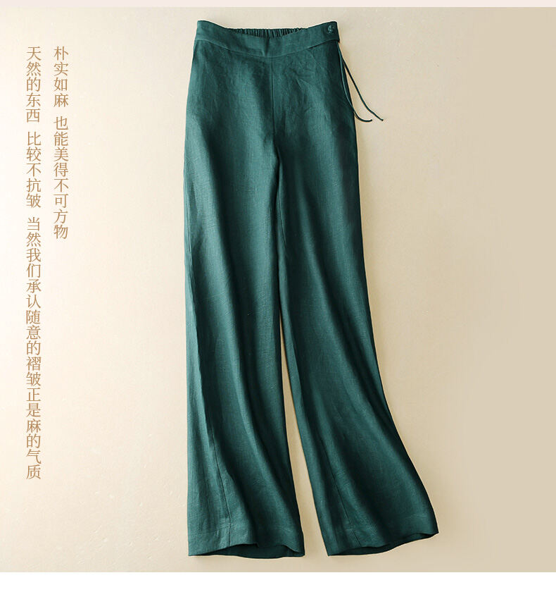 Foreign Trade France Single Women's Clothing Clearance Brand Solid Color Linen Straight Wide Leg Pants Women's Casual Slim Looking Cotton Linen Long Pants