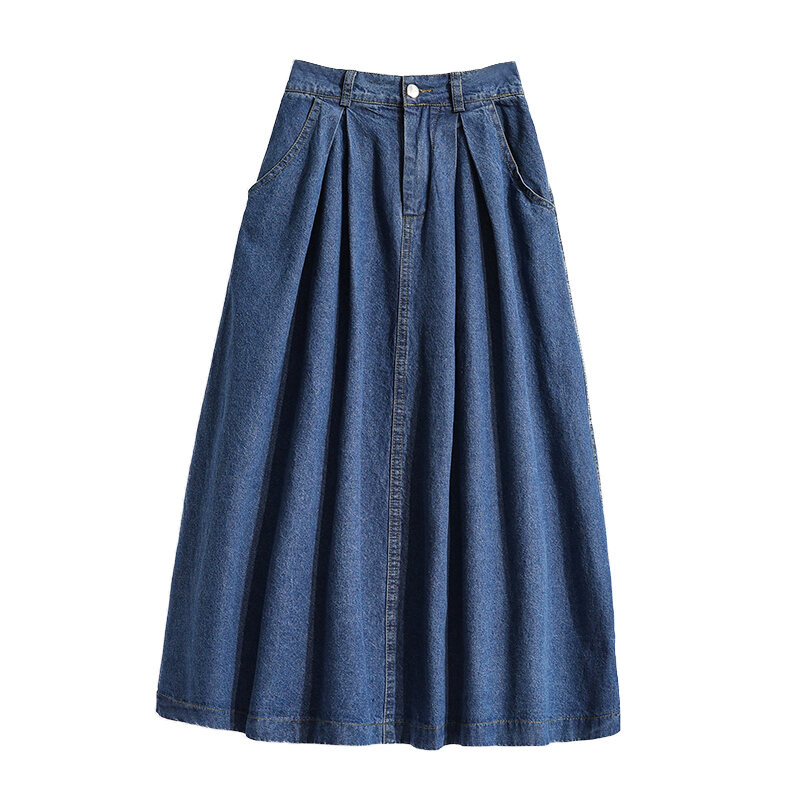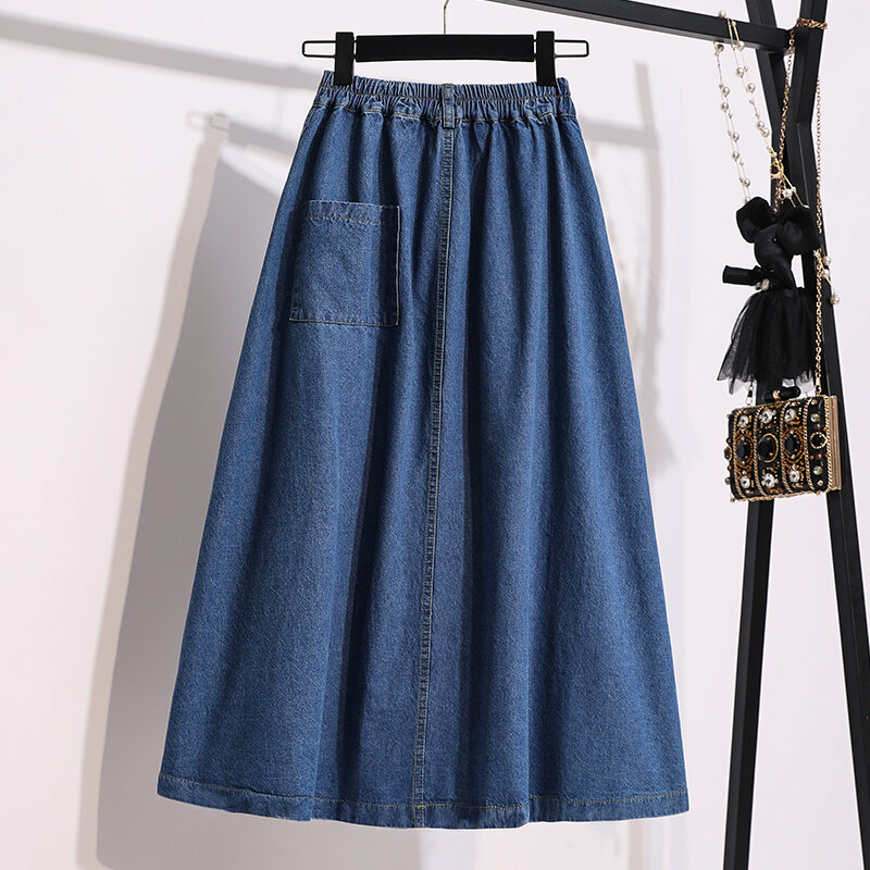 Plus Size Loose Youthful-Looking Temperament Skirt Summer Fat Sister Slim Looking A- line Denim Skirt Casual Swing Mid-Length Dress Women