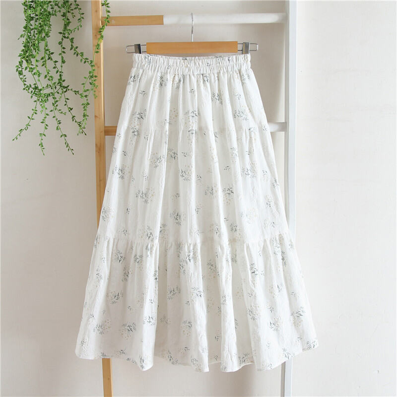 Homemade 2023 Spring Summer High Waist A- line Floral Skirt Long Cotton Japanese Style Cover Skirt Slim Looking