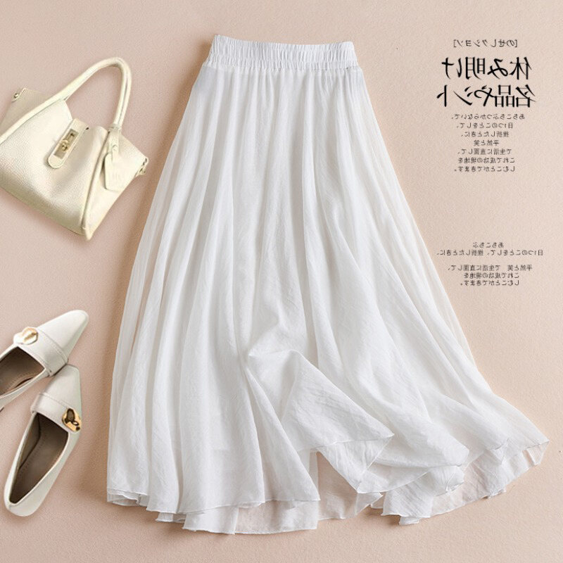 Plus Size Women's Cotton and Linen Solid Skirt Summer 2023 New Arrival High Waist Figure Flattering Flowy A- line Large Hem Long Skirt