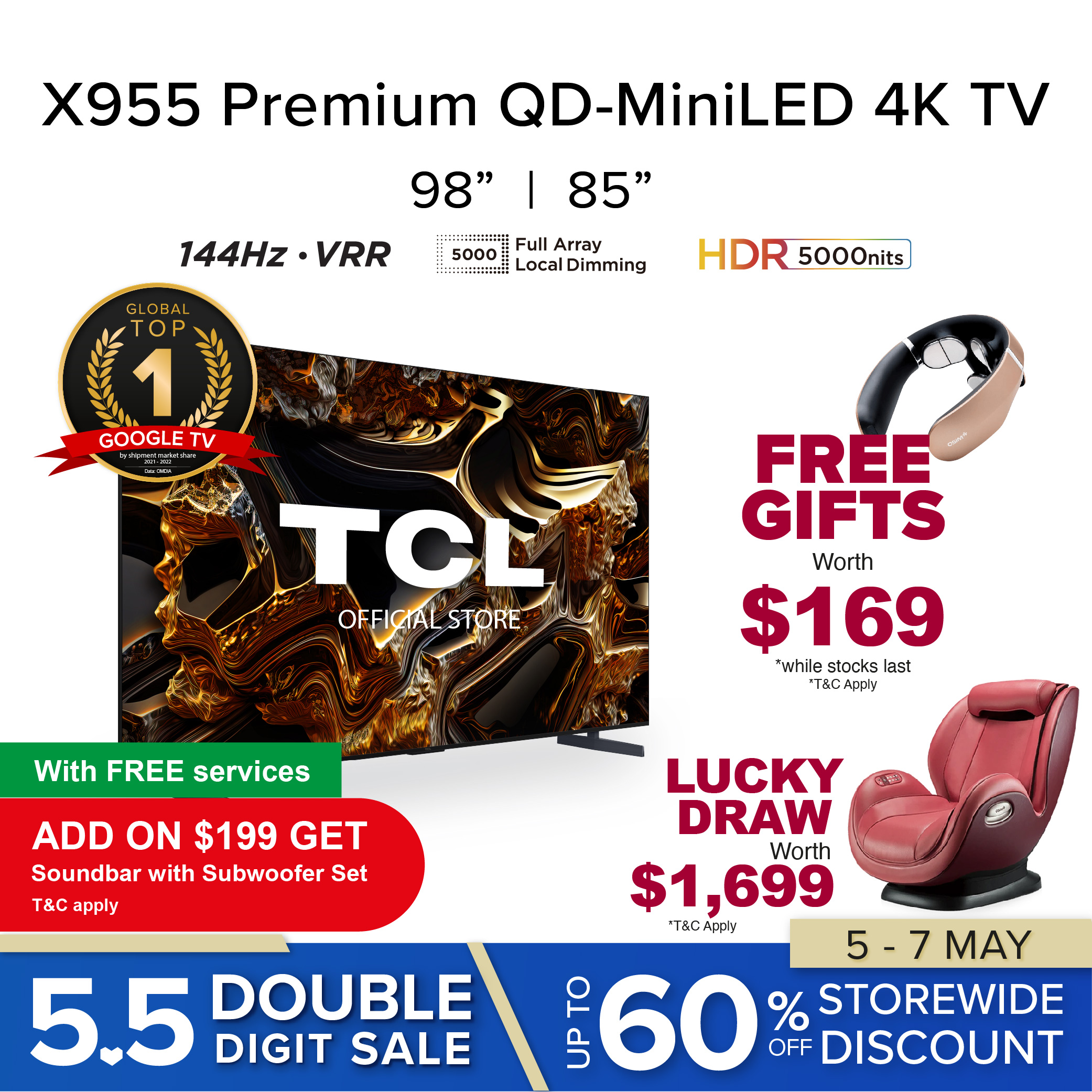 Free OSIM Unek Pilse Tens Neck Massager (worth 169)with every confirmed order of QLED C7 and Mini LED C8, C9 X955 series