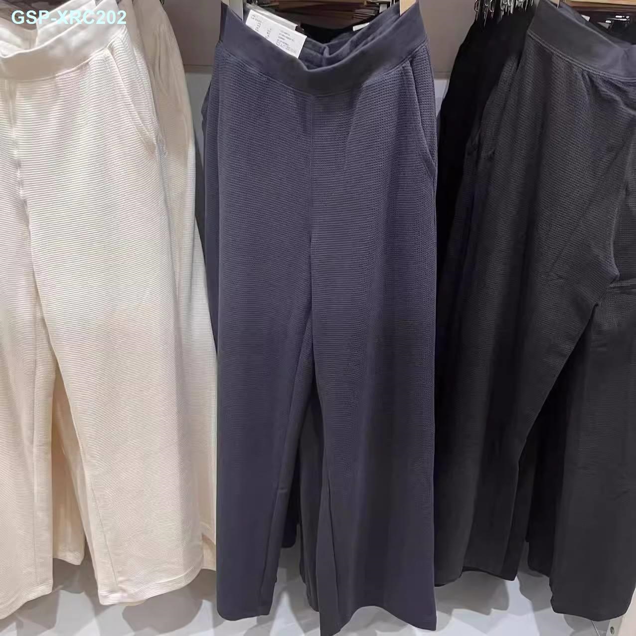 UNIQLO Japanese Single U Home 2023 Women's Waffle Elastic Elastic Straight Pants (New Loose Casual Pants) 458976