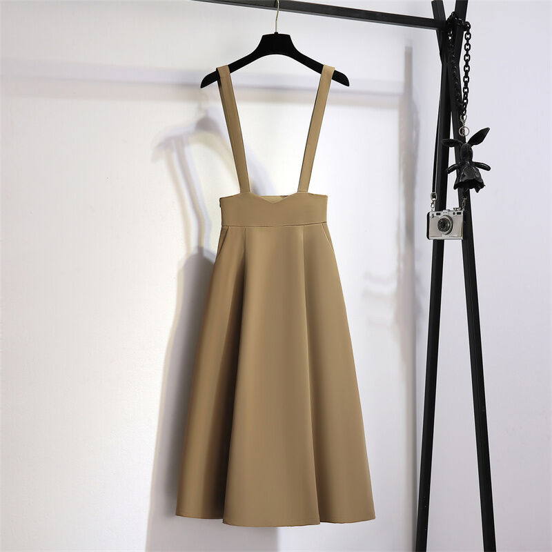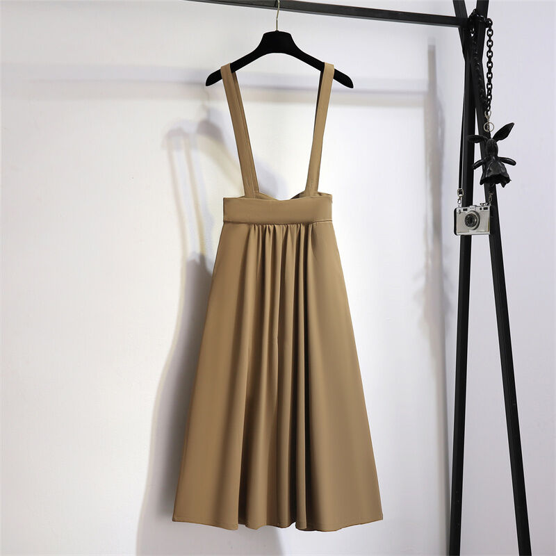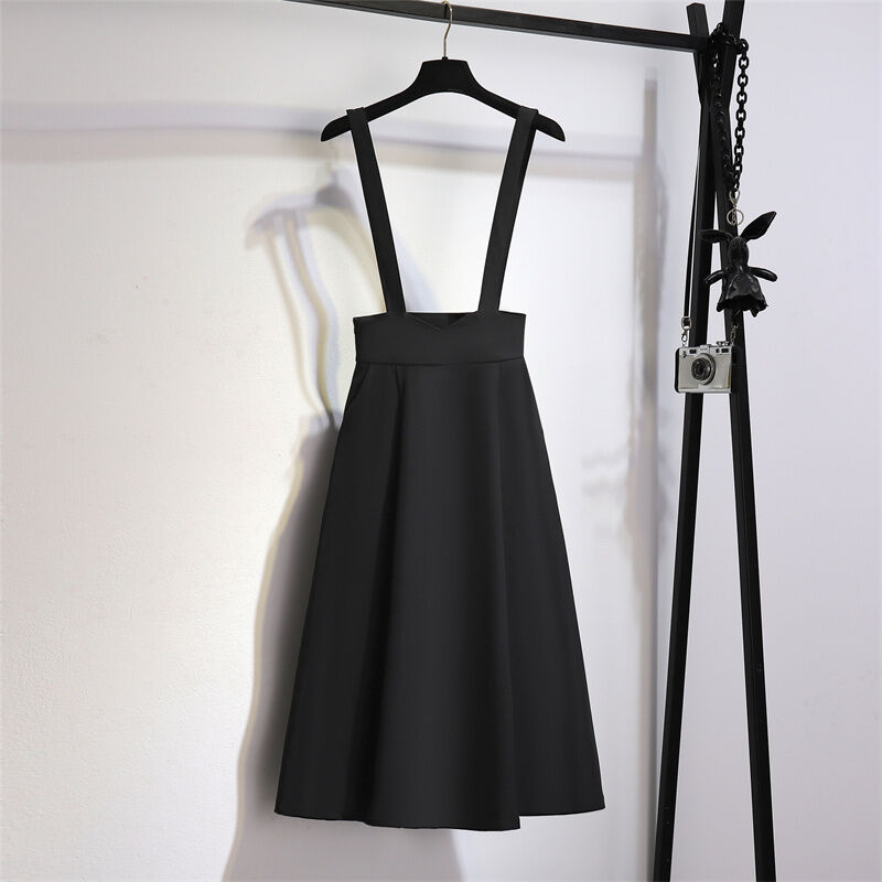 Stylish Suspender Skirt Women's Mid Length Long Length Suit Skirt Summer Slimming High Waist A- line Umbrella Skirt Drape Black Skirt