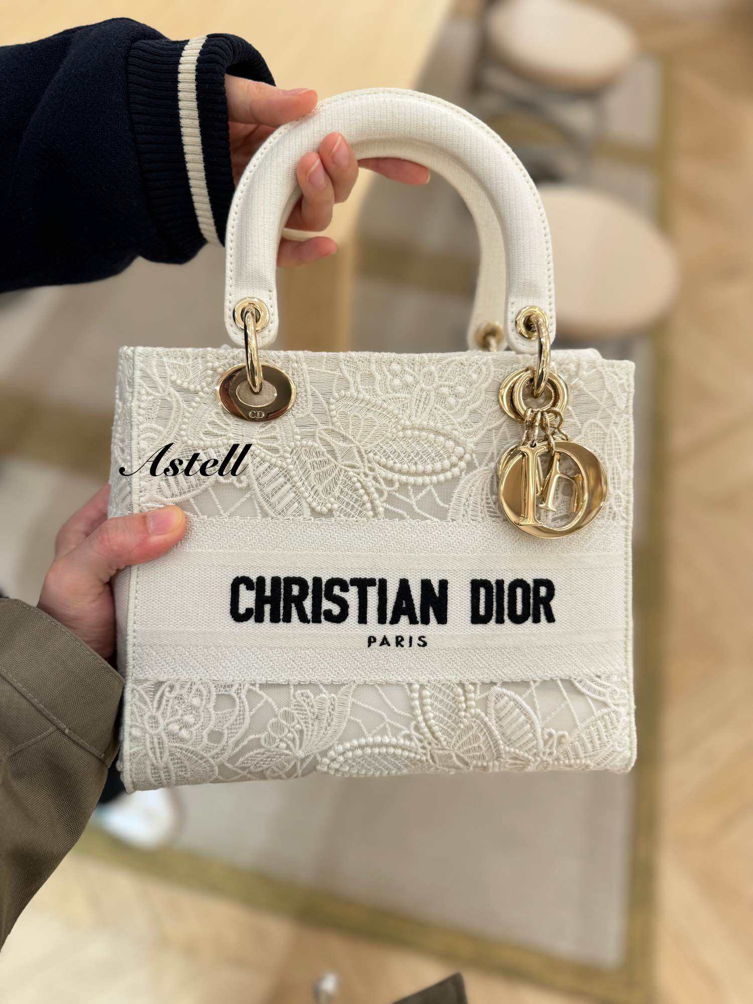 [PRE-ORDER] DIOR MEDIUM LADY D-LITE BAG BUTTERFLY MACRAME EMBROIDERY WHITE