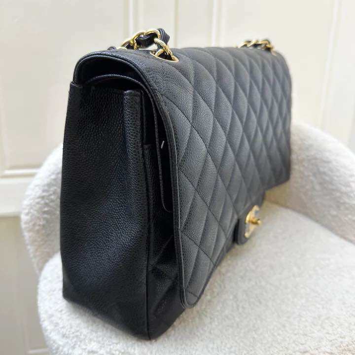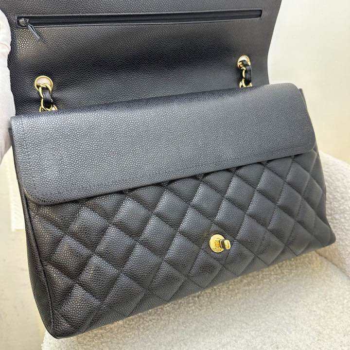 (Pre-loved) Chanel Maxi Classic Flap DF in Black Caviar and GHW