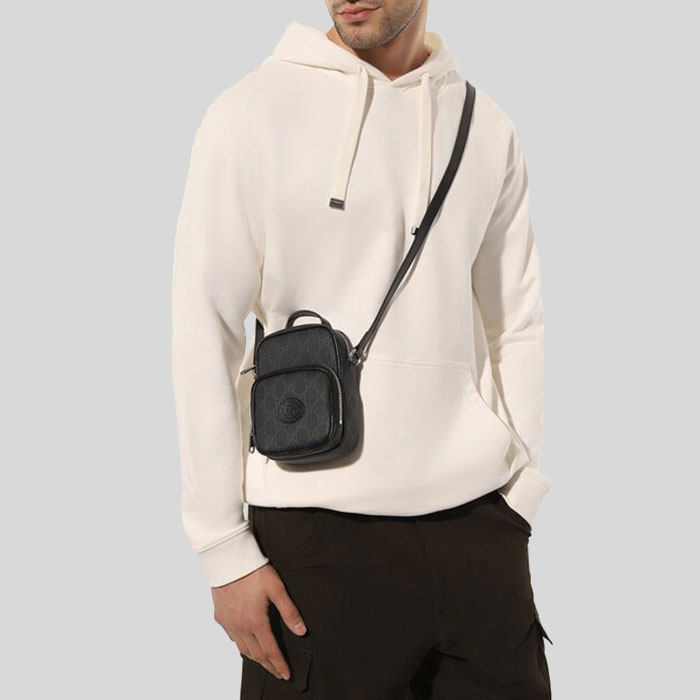 COLOUR: Black MATERIAL: GG Supreme canvas SIZE: W12cm x H17cm x D7cm PRODUCT DETAILS: One small zip pocket on front One main compartment with zip closure Adjustable shoulder strap Made in Italy Style #67295292TCN1000 PACKAGING DETAILS: Packed in Gucci dustbag and gift box WARRANTY: Product does not come with any warranty services in the event of wear and tear. RETURN/EXCHANGE: Returns must be unworn, unwashed, undamaged, unused, with the store tag attached. Returns will only be accepted if the product is returned in its original condition with all provided boxes / dust bags. Exchanges are subjected to stock availability.