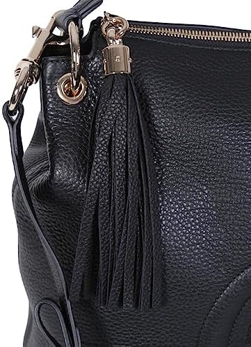 This black Gucci bag exudes luxury with its beautiful leather and gold-toned hardware. The famous interlocking GG logo is displayed proudly on the front. With a zipper pocket and two open pockets befitting of a phone, you'll have space to organize what you need to bring with you. Model: 536194 Black Leather Gold-tone Hardware GG Soho Top Zip Closure Leather Shoulder Strap Removable/Adjustable Shoulder Strap Three Interior pockets Strap Drop: 5" Measurements: 13.5" x 5.5" x 13" (LWH) Includes authenticity cards and Gucci dust bag Made in Italy #4,261,511 in Clothing, Shoes & Jewelry ( ) #5,633 in